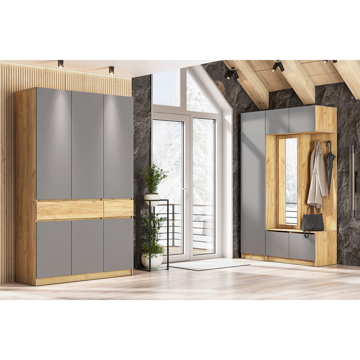 Шкаф Квадро Дуб Вотан-Белый гладкий