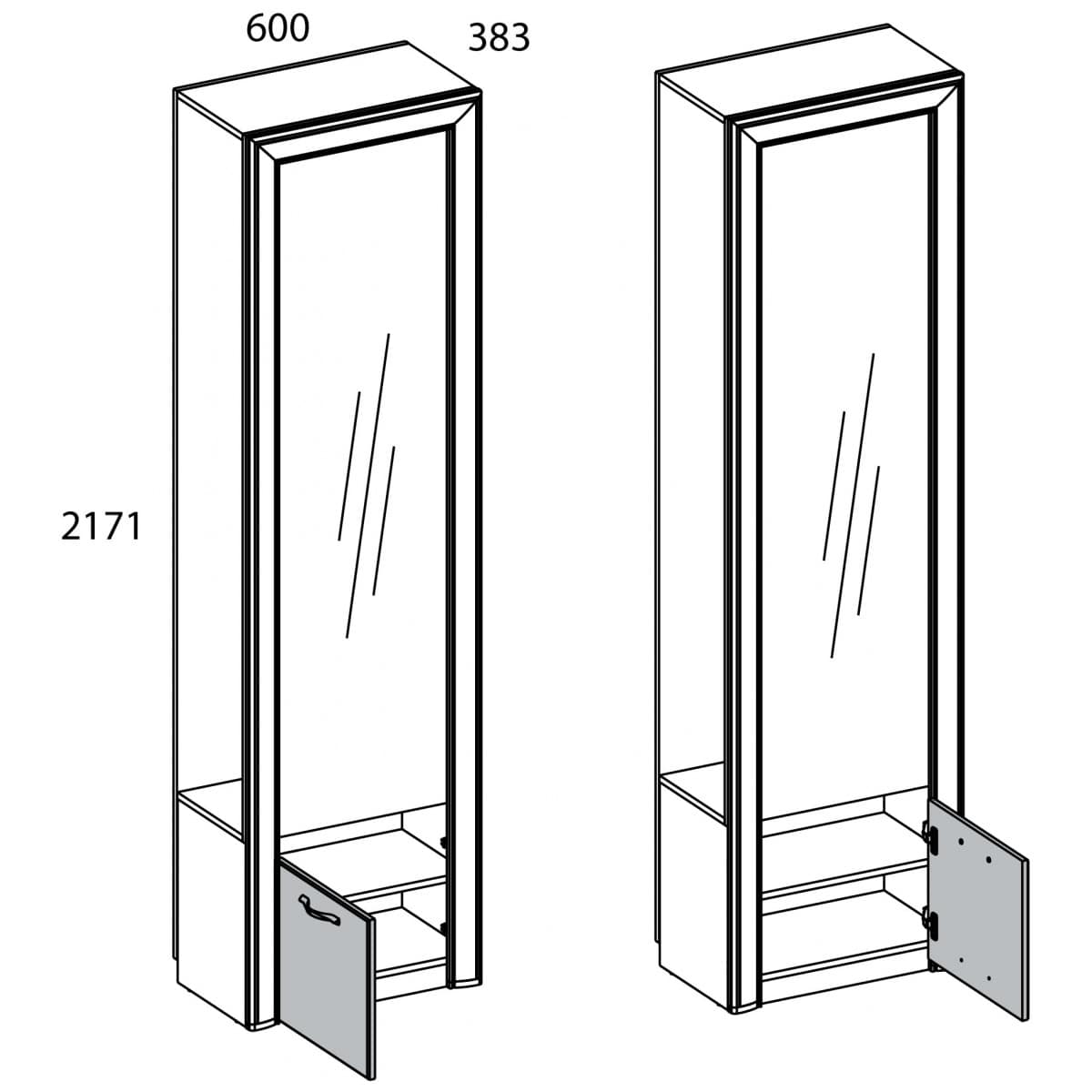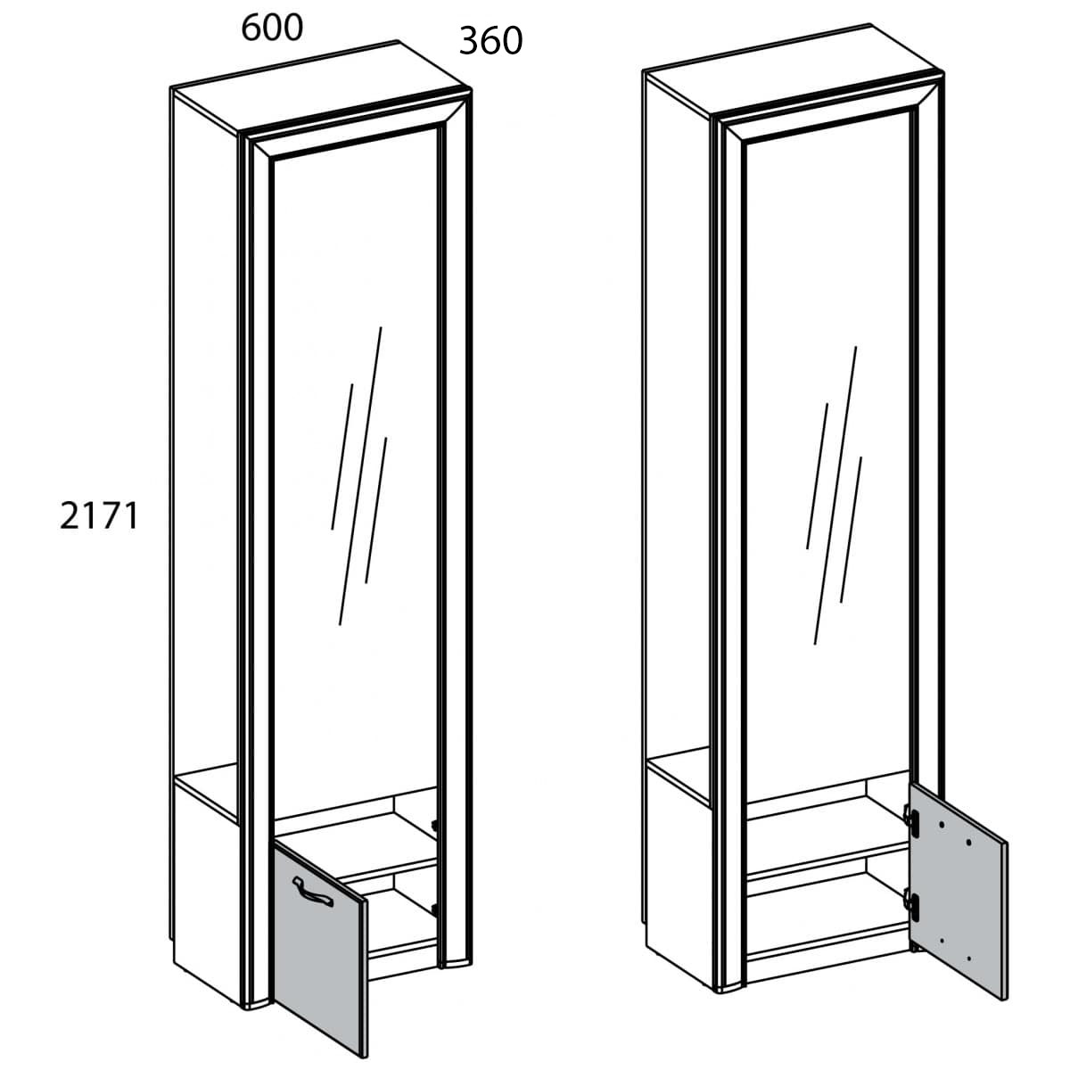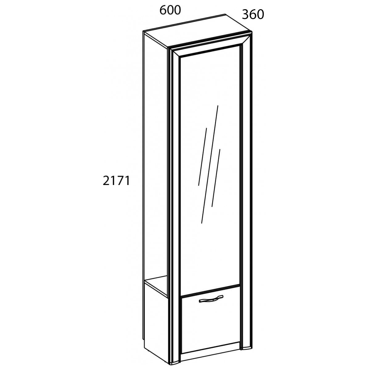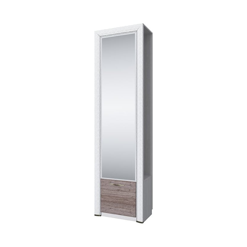 Удобное расположение вещей должно начинаться с порога, а именно – с прихожей. Шкаф Оливия 1DZ имеет оригинальный дизайн и даёт возможность организовать практичную прихожую, даже с минимальным набором элементов. Шкаф 1DZ – прямой. Имеет одно отделение для хранения верхней одежды, в котором отсутствуют боковые стенки корпуса для удобного и быстрого размещения одежды, и одно отделение с большой нишей за глухой дверью (1D), зеркало.