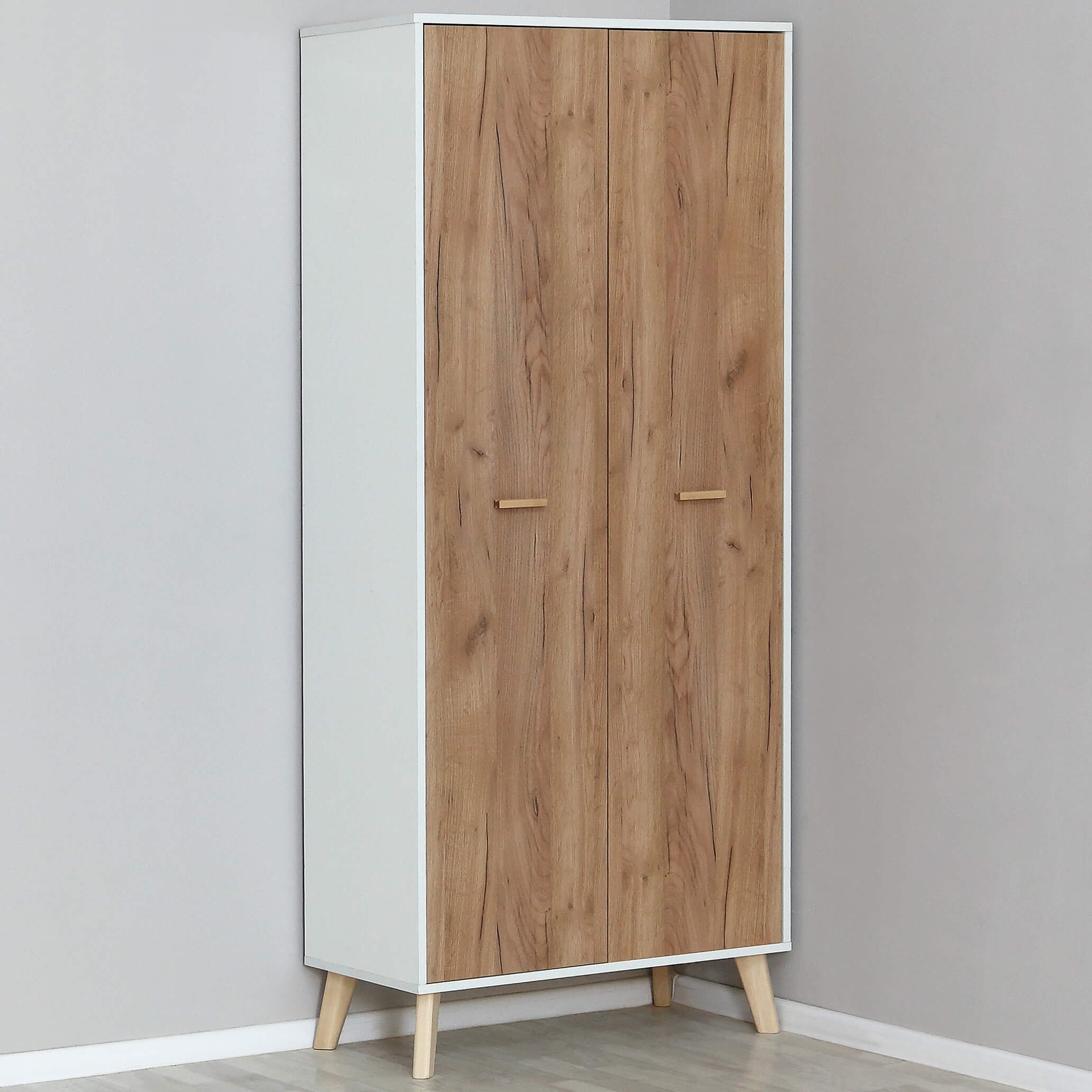 Шкаф 2-х дверный Скандик Белый жемчуг/Дуб Крафт золотой