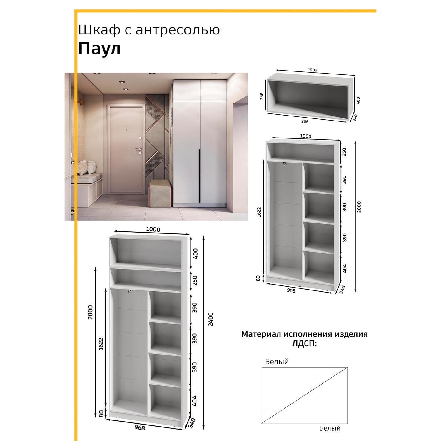Дополнительно к шкафу можно приобрести Антресоль Паул.