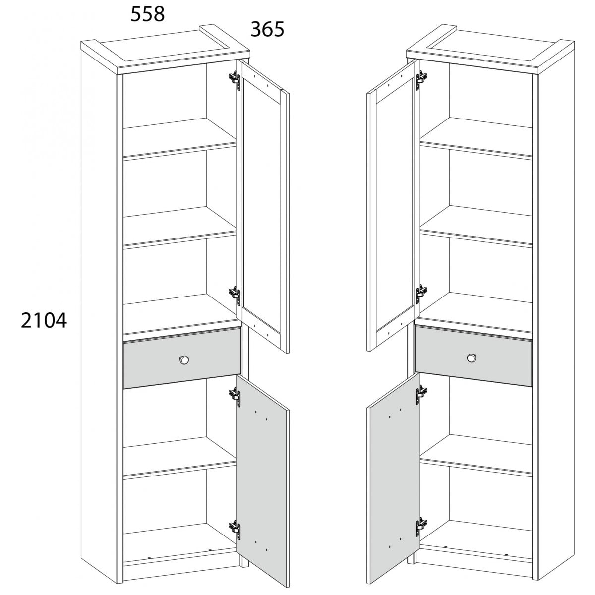 Полки: ЛДСП - 16 мм, цвет – дуб мадура 355 SWN, ЛДСП – 32 мм (стационарная полка), цвет - дуб веллингтон 370 SWN.