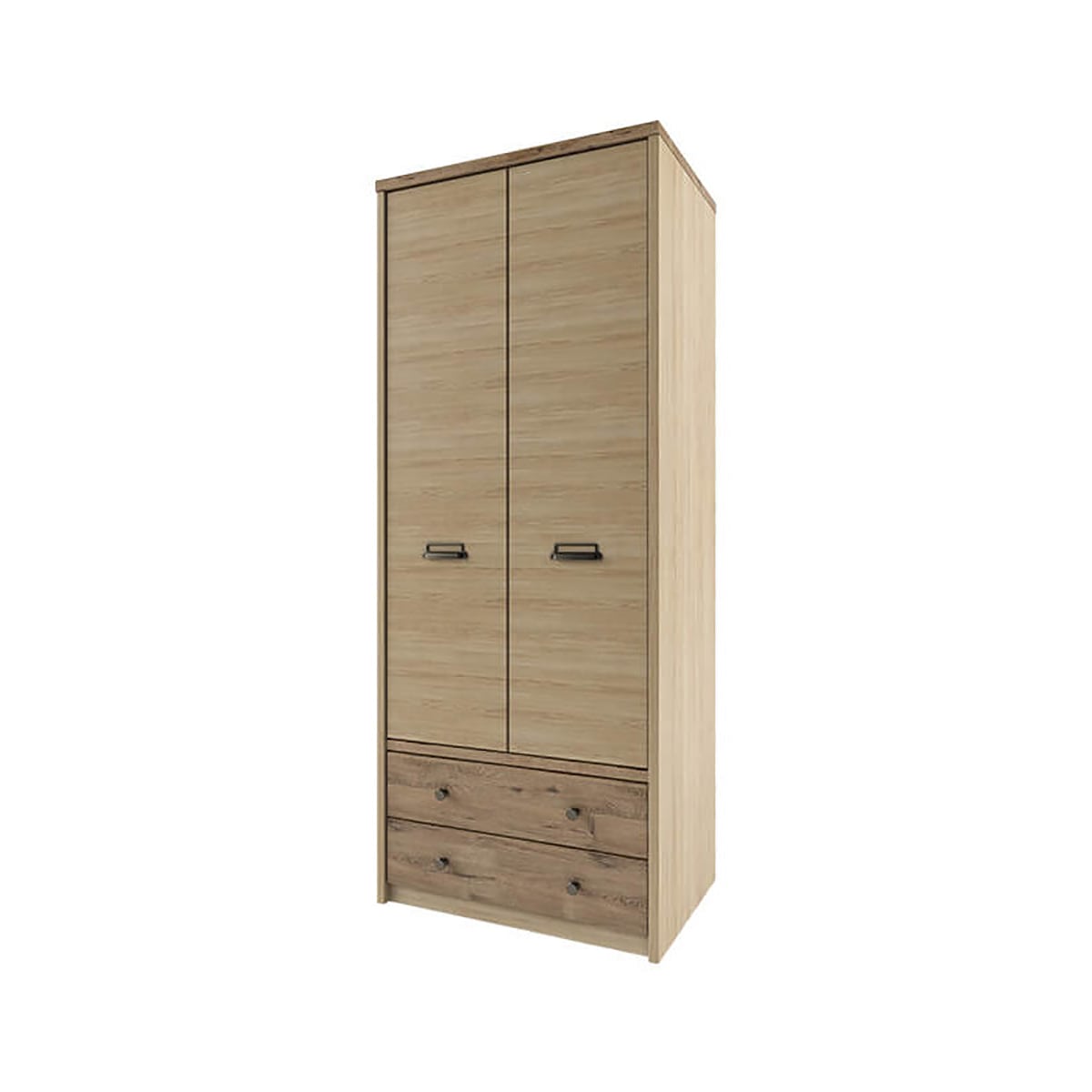 Шкаф DIESEL 2DG2S – модное современное решение для организации молодёжной комнаты в стиле Loft, который передаётся через каждую деталь элемента – металлическая фасадная фурнитура, сочетание древесных текстур. Шкаф DIESEL 2DG2S имеет прямую конструкцию. Конструкция элемента представляет собой одно гардеробное отделение за двумя глухими дверями (2D), нишу сверху, два выдвижных ящика (2S). Двери распашные, крепятся на петли к боковому корпусу изделия.