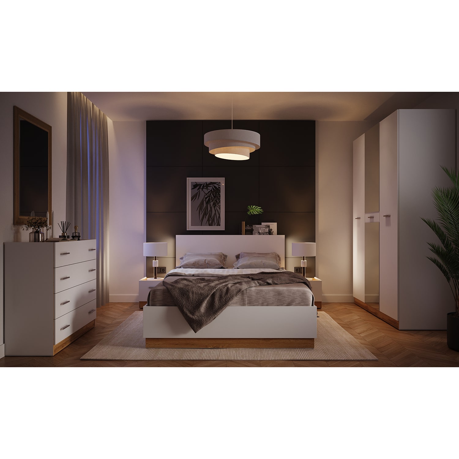 Простая и непритязательная, но в то же время стильная спальня FRESCO покоряет своей актуальностью и практичной функциональностью. Мебель выполена из качественного ЛДСП 16 мм.