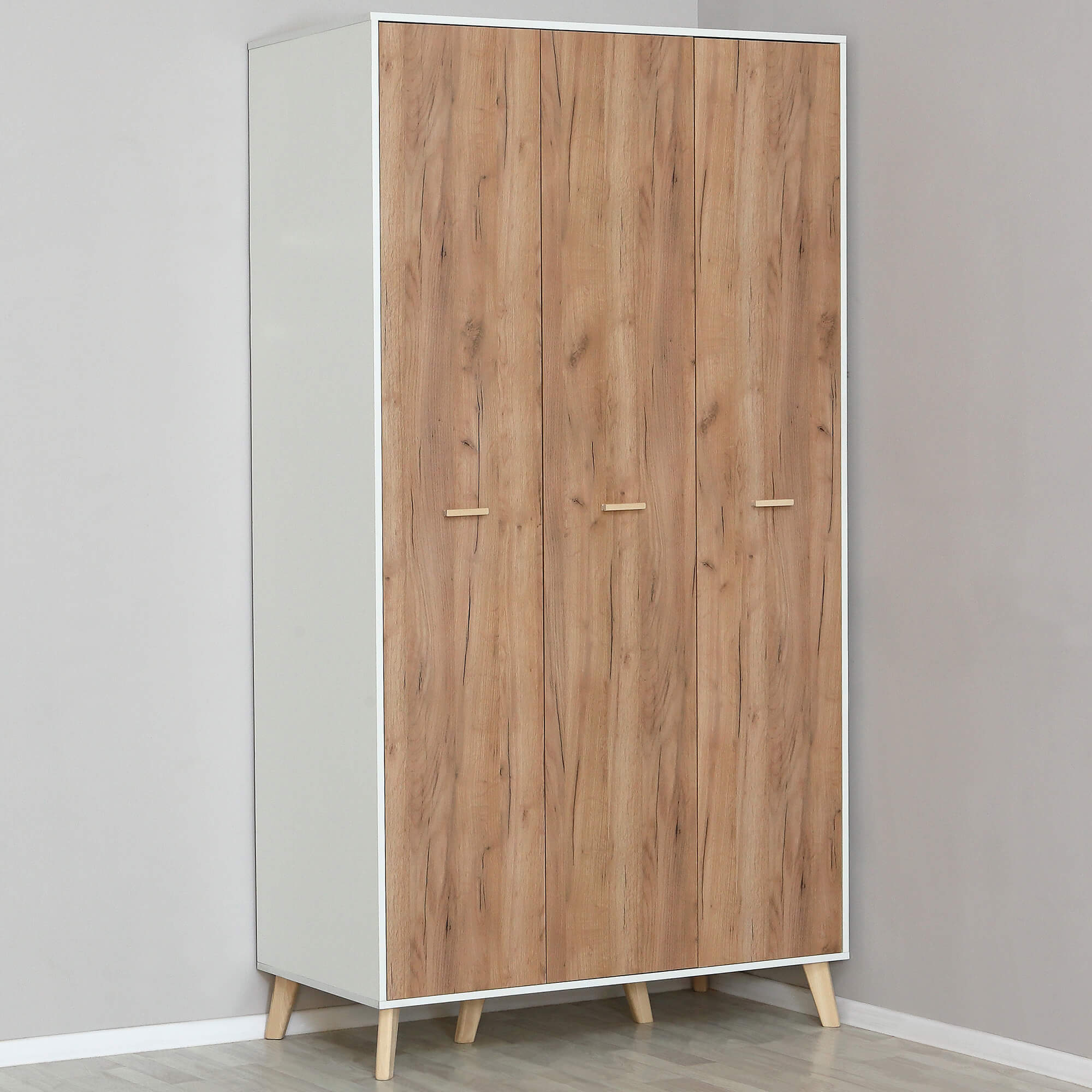 Шкаф 3-х дверный Скандик Белый жемчуг/Дуб Крафт золотой