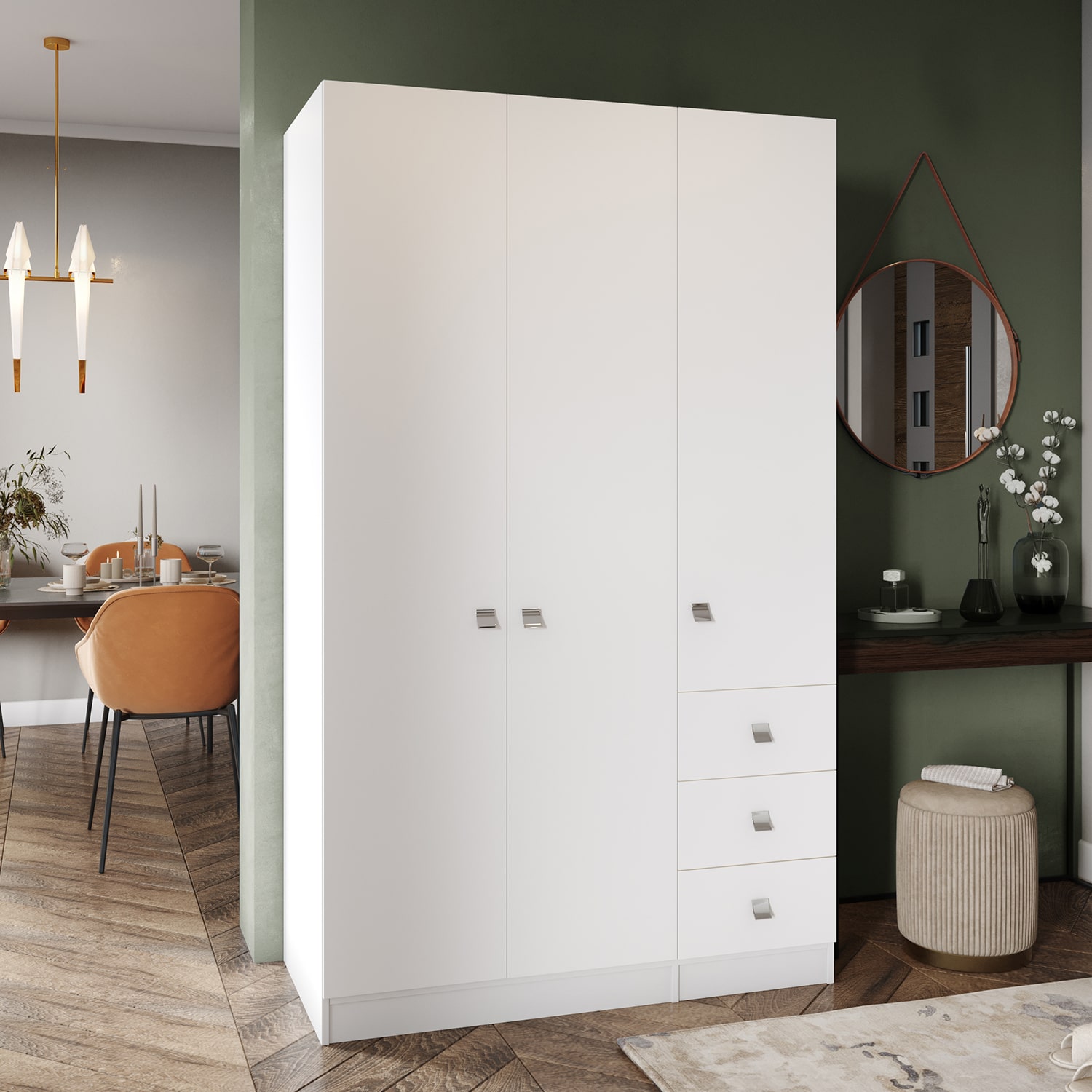 Шкаф распашной «Лофт» — это не только функциональное решение для хранения вещей, но и стильный элемент декора. Три отделения шкафа позволяют удобно организовать пространство комнаты и разместить все необходимые вещи. На полках шкафа можно разместить сложенную одежду, а на штанге — верхнюю одежду. В трех вместительных выдвижных ящиках можно хранить мелкие вещи. Регулируемые скрытые под цоколем опоры придают устойчивость всей конструкции шкафа.