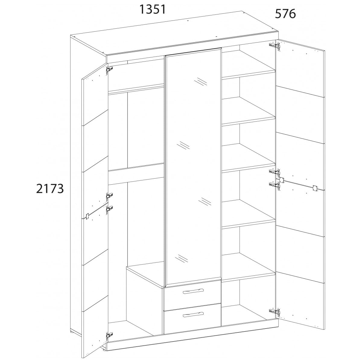 1351x576x2173 мм