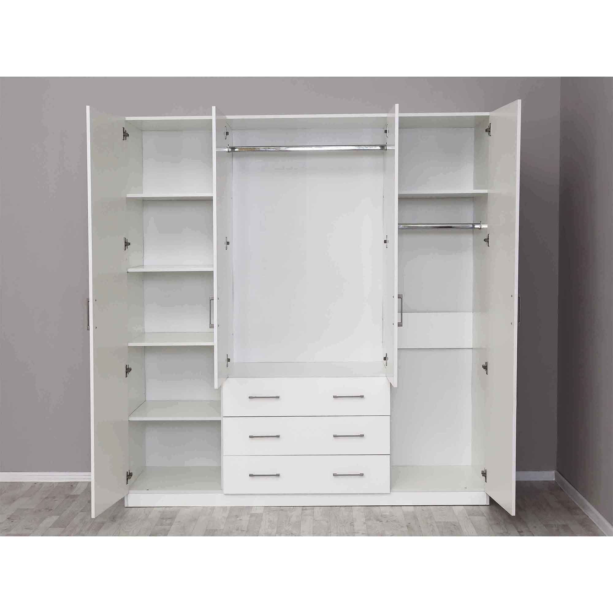 Шкаф "Элегия" — это элегантный четырёхдверный шкаф, который станет отличным дополнением к любому интерьеру. Он выполнен из высококачественных материалов и обладает современным дизайном. Внутри шкафа расположены удобные полки и штанги для хранения одежды, что позволяет оптимизировать использование пространства.