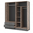 Шкаф оснащен четырьмя распашными дверями, каждая из которых оснащена доводчиком для плавного и бесшумного закрывания. Внутри шкафа расположены четыре полки и два ящика на шариковых направляющих полного выдвижения, что обеспечивает удобство использования.