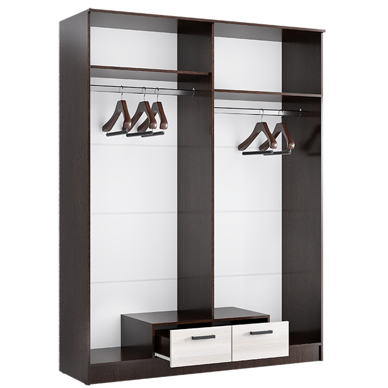 Шкаф оснащен двумя штангами для вешалок и двумя ящиками, что позволяет удобно разместить предметы вашего гардероба. Распашные дверцы обеспечивают легкий доступ к содержимому шкафа.
