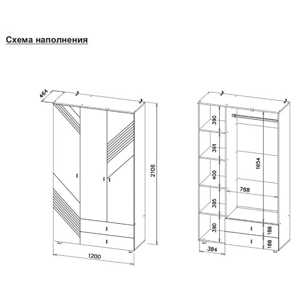 Шкаф распашной трехстворчатый с двумя ящиками на шариковых направляющих.