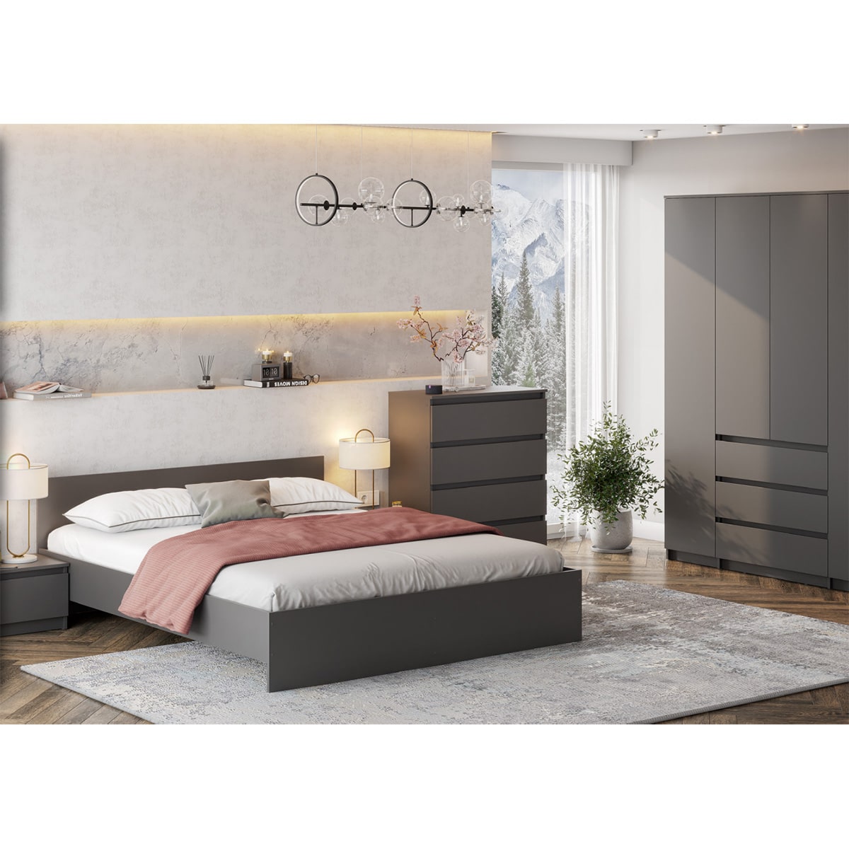 Графит — это глубокий и насыщенный цвет, самостоятельный, идеально смотрится в монохромном исполнении. Отлично впишется в любые стили интерьера: «Минимализм», «Современный» и всем полюбившийся «Лофт».