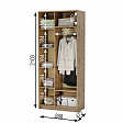 Одна секция шкафа представляет собой отдел с полками, а во второй расположена выдвижная штанга под одежду.