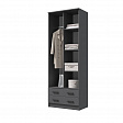 Шкаф оснащен двумя распашными дверями, за которыми находятся три полки и штанга. Это позволяет удобно разместить одежду, аксессуары и другие предметы, экономя пространство в комнате.