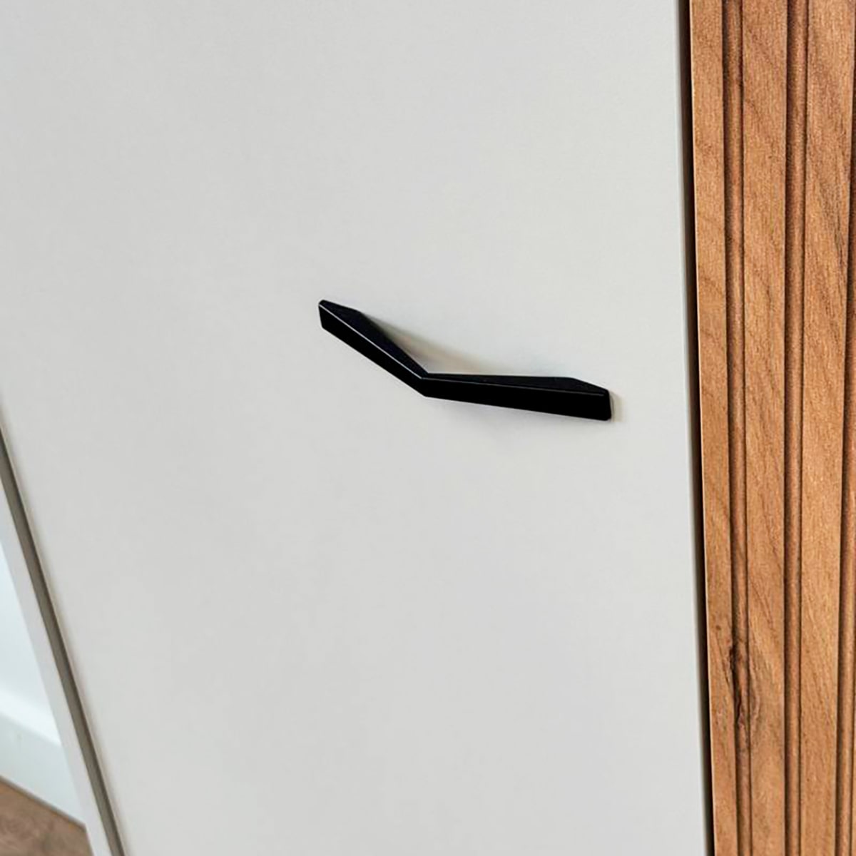 Особый шарм шкафу придает декоративный элемент цвета дуб крафт золотой на одной из дверей, добавляя нотку роскоши и уникальности.