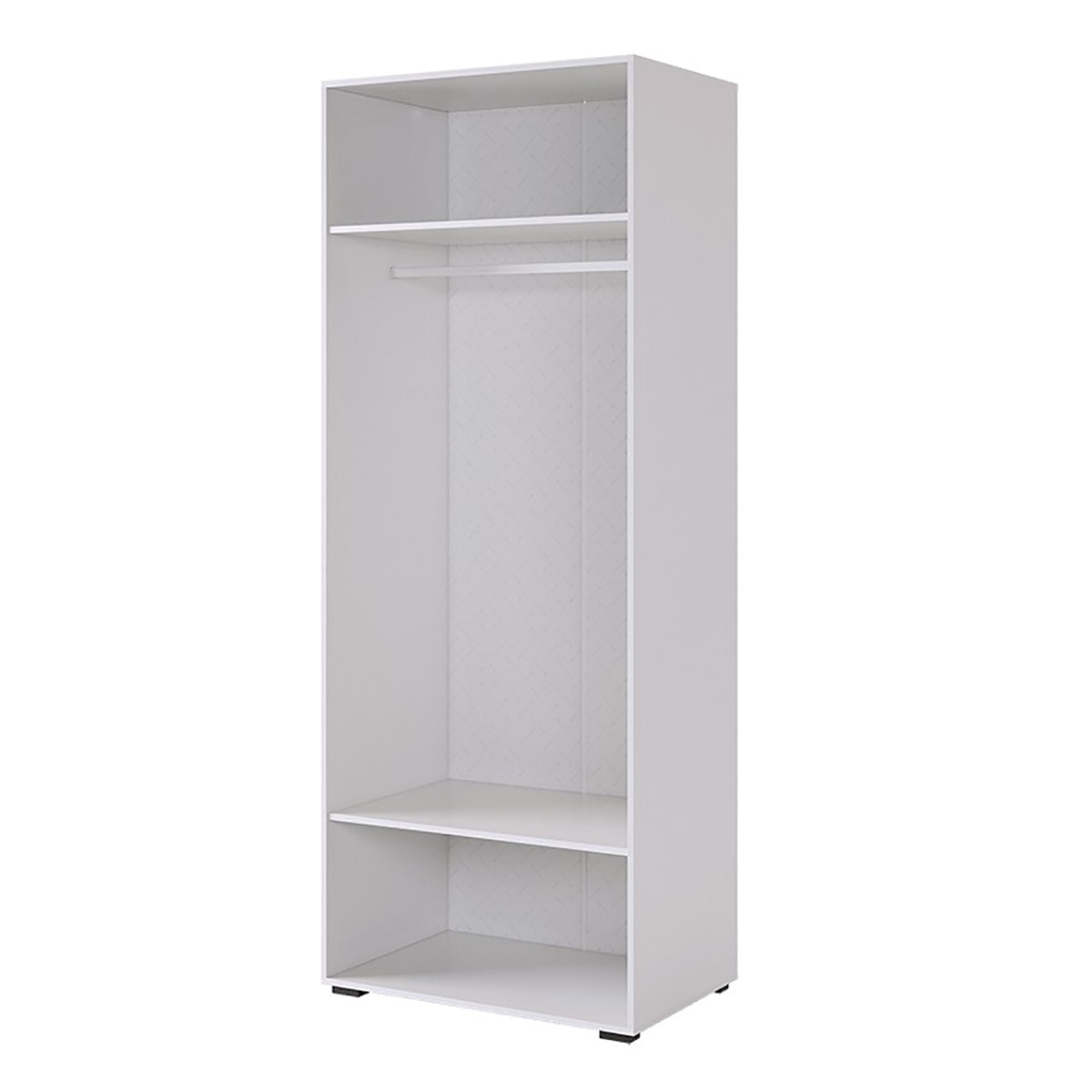 Что делает этот шкаф особенным? Его корпус изготовлен из лдсп белого дерева, что придает ему легкость и свежий вид. Фасады, выполненные из мдф и облицованные пленкой пвх белого матового цвета, добавляют шкафу элегантности. Уникальной особенностью дизайна являются вертикальные полосы на фасаде, созданные с помощью фрезеровки. Петли с доводчиком гарантируют бесшумное закрывание фасадов, залог вашего комфорта. Удобные металлические ручки облегчают открывание и закрывание шкафа, а штанга для одежды и полки дополнительно обеспечивают удобное размещение и организацию внутреннего пространства. Ножка пластиковая черного цвета дополняет общую композицию, а ее высота в 20мм придает шкафу легкость и стабильность.