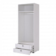 - Внутреннее наполнение включает штангу для одежды, полки и два удобных ящика с шариковыми направляющими.