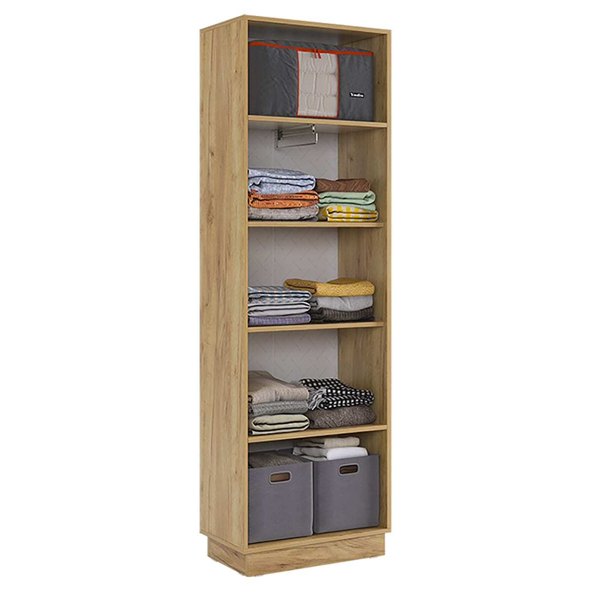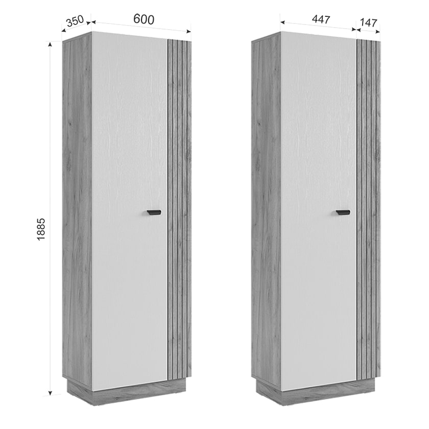 Состоит из: шкафа с 2-мя дверцами, 2-мя стационарными полками, 2-мя съемными полками и одной выдвижной штангой для одежды.