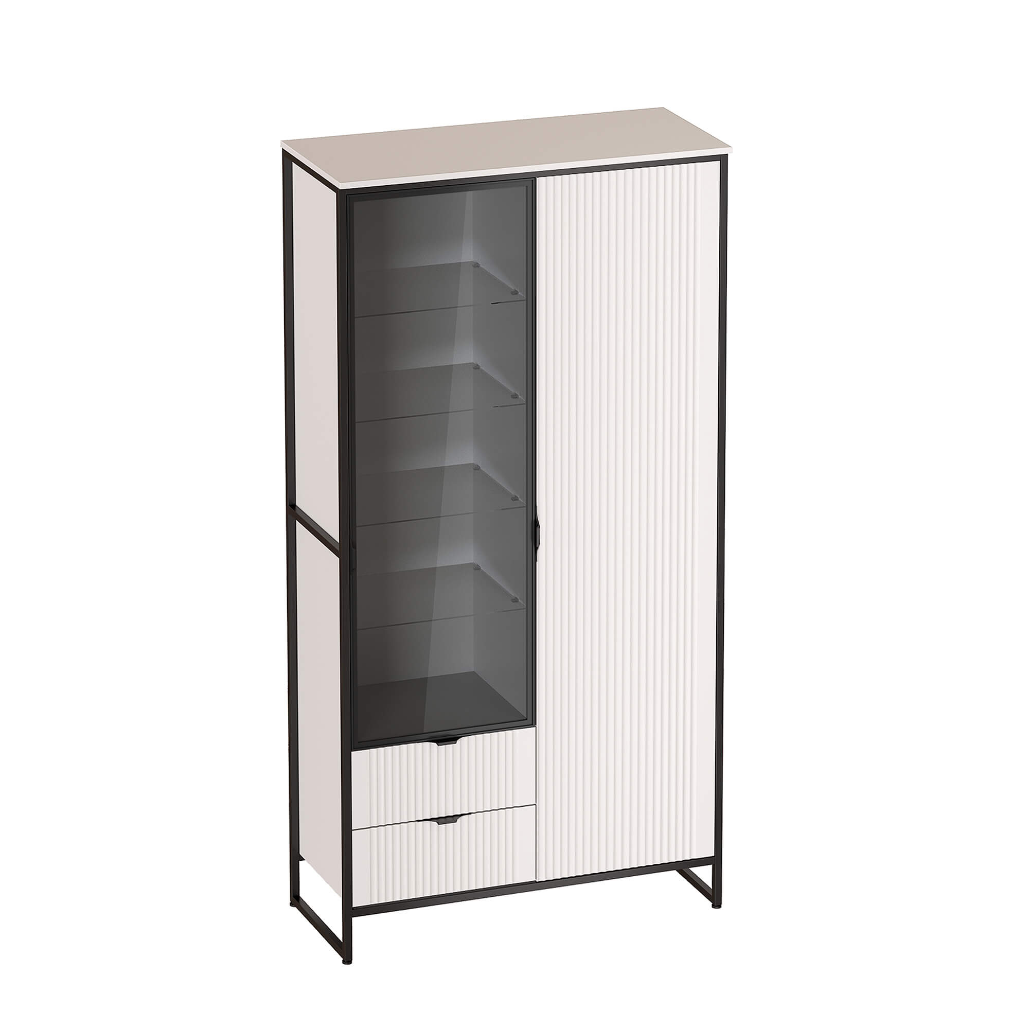В левой части шкафа установлены 4 стеклянные полки, что позволяет удобно размещать и демонстрировать предметы.