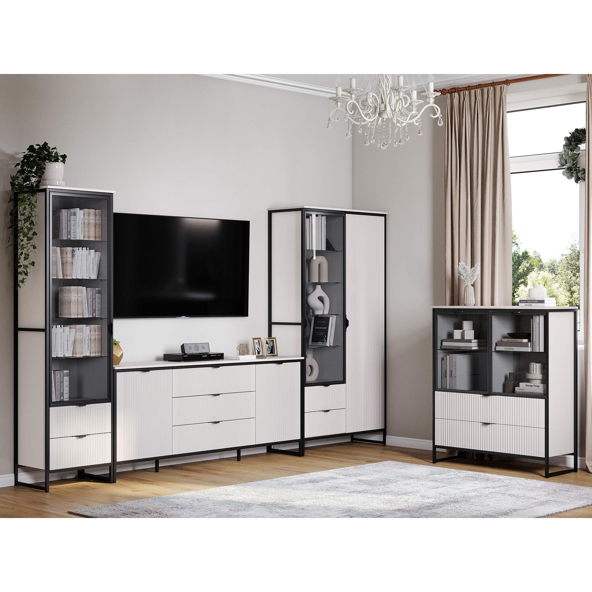 Коллекцию модульной гостиной "Нора" отличает современный оригинальный стиль. Декоративная продольная фрезеровка на фазадах из МДФ и опоры на металлокаркасе соответствуют модным тенденциям этого года в ведущих зарубежных коллекциях.