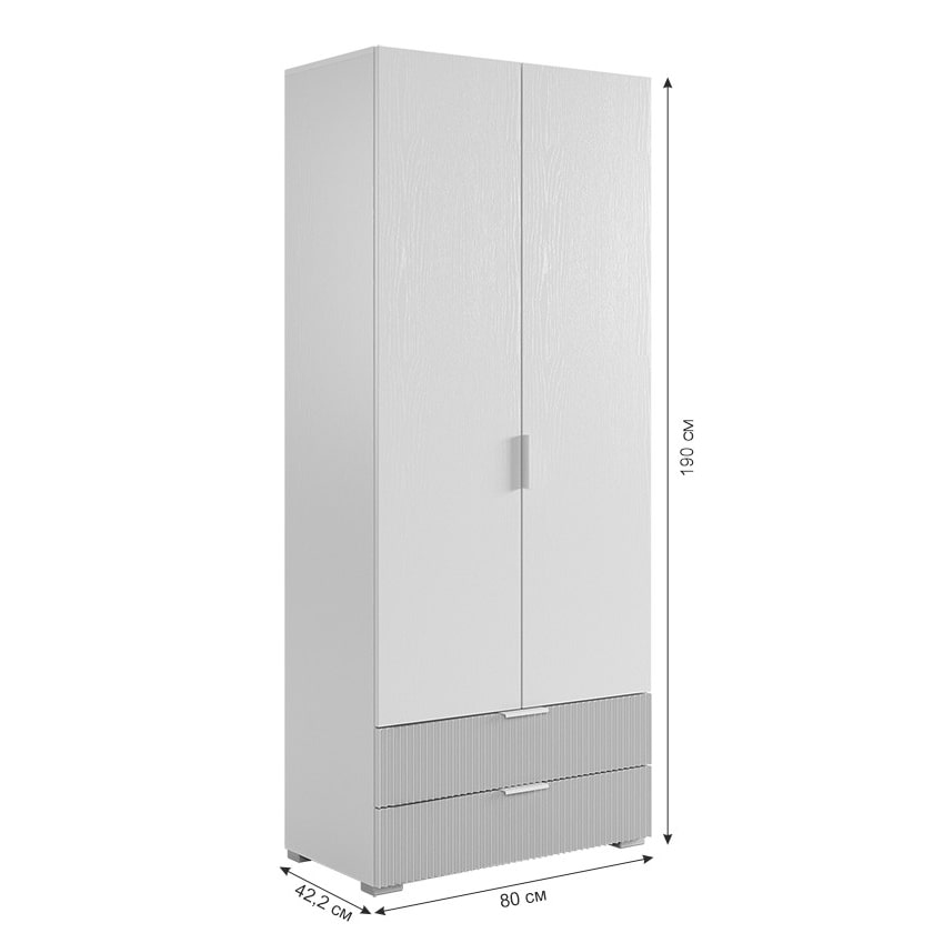 Шкаф "Зефир" двухдверный 120.01 имеет два ящика с шариковыми направляющими, обеспечивая легкое и плавное открытие и закрытие. Благодаря бесшумному закрытию фасадов, вы не будете беспокоиться о лишнем шуме и о неприятном хлопке при закрывании шкафа.
