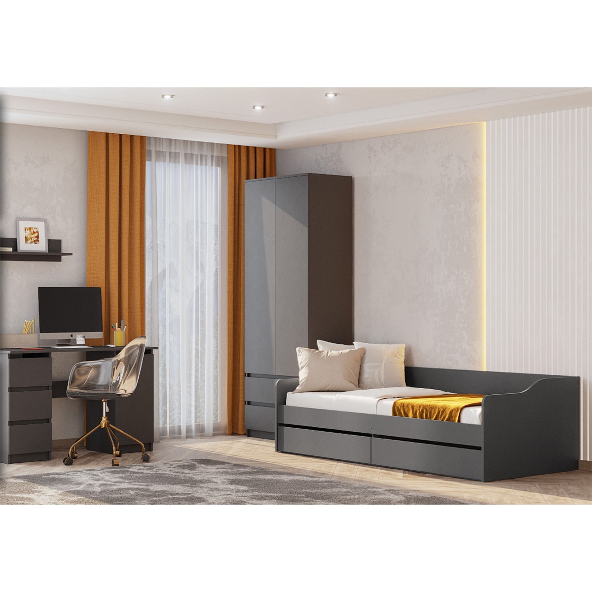 Графит — это глубокий и насыщенный цвет, самостоятельный, идеально смотрится в монохромном исполнении. Отлично впишется в любые стили интерьера: «Минимализм», «Современный» и всем полюбившийся «Лофт».