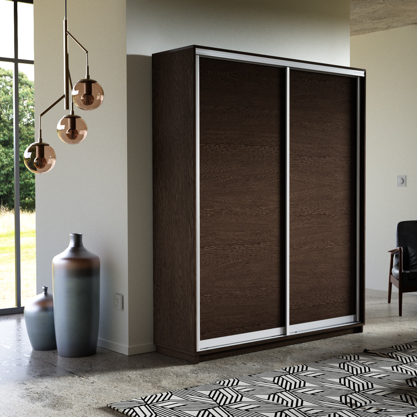 Шкаф-купе 2-х дверный Экспресс Элемент 2400х1200х450 мм доступен к заказу в различных вариантах исполнения цвета фасада и корпуса, среди которых каждый сможет найти подходящий своему интерьеру.