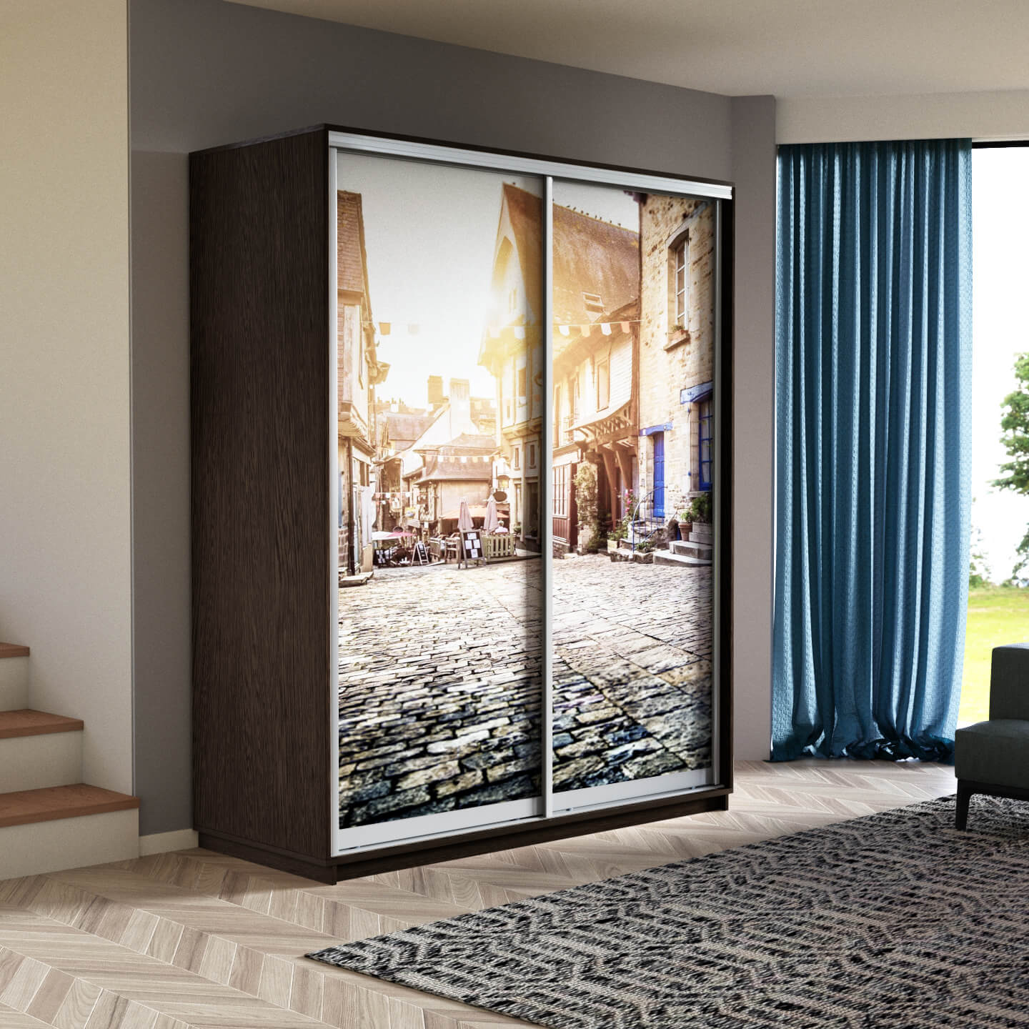 Шкаф-купе 2-х дверный Экспресс Фотопечать 2400х1200х450 мм доступен к заказу в различных вариантах исполнения цвета фасада и корпуса, среди которых каждый сможет найти подходящий своему интерьеру.