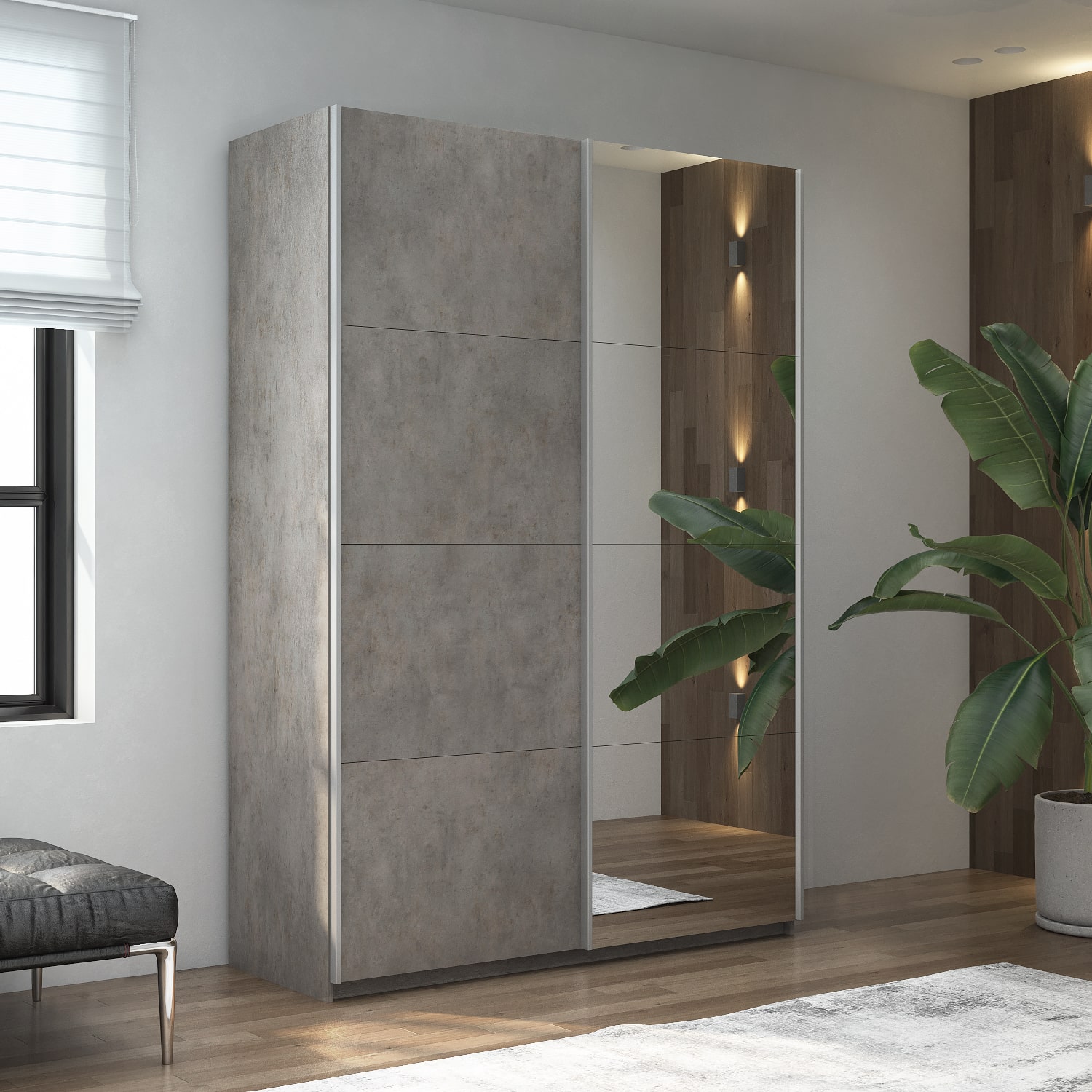 Из плюсов могу отметить, что у данной серии шкафа неплохой ассортимент. Смогли подобрать под наш современный стиль. Взяли бетонный корпус и белые двери. Так вот, белые двери оказались матовые. А мы думали ,что будет глянец. Но, так тоже неплохо. Сам шкаф очень вместительный. За счет того, что двери снаружи, не съедается пространство в корпусе. Много полок.