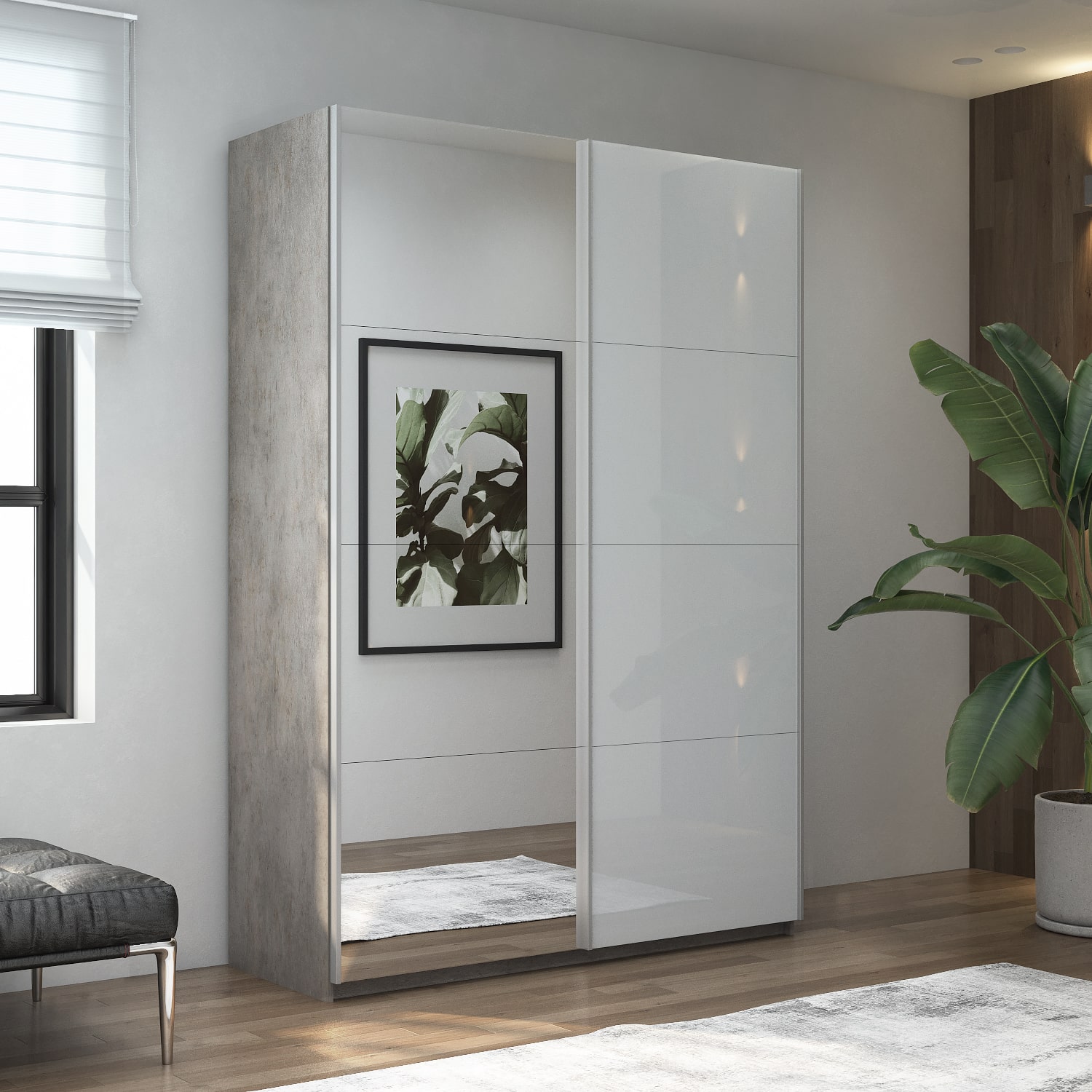 Из плюсов могу отметить, что у данной серии шкафа неплохой ассортимент. Смогли подобрать под наш современный стиль. Взяли бетонный корпус и белые двери. Так вот, белые двери оказались матовые. А мы думали ,что будет глянец. Но, так тоже неплохо. Сам шкаф очень вместительный. За счет того, что двери снаружи, не съедается пространство в корпусе. Много полок.