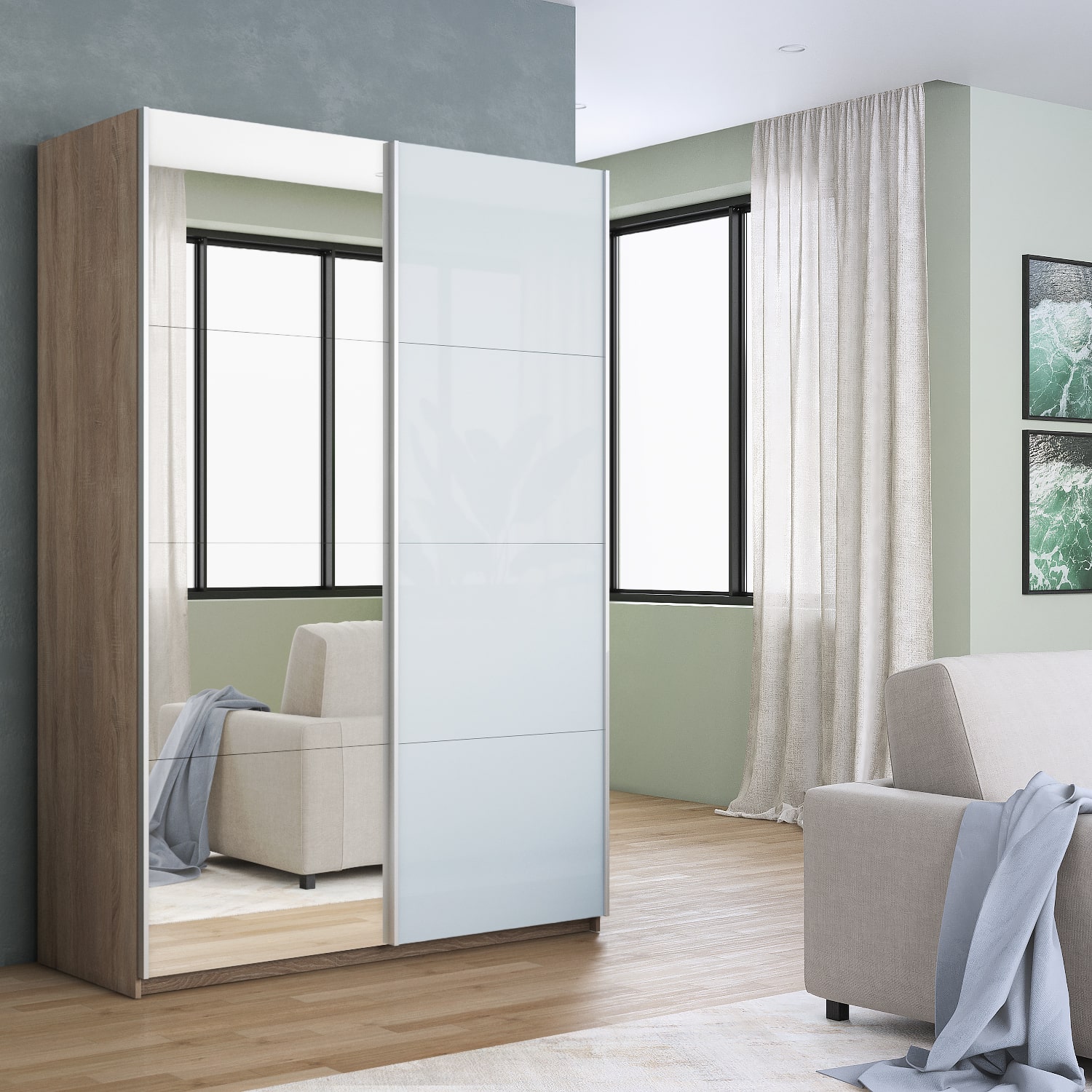 Шкаф-купе 2-х дверный Прайм Медиум Белое стекло 2300х1400х570 мм, материал корпуса - ЛДСП. Производитель - Е1. Шкафы-купе Прайм – это качественные модели с оригинальными и современными фасадами. Идеальное решение для Вашего гардероба! Внутри имеются вместительные полки для складирования сложенных вещей, антресоли и секция для размещения одежды на плечиках. С таким количеством мест для хранения вы можете рассортировать вещи и поддерживать идеальный порядок в шкафу. Прочная система направляющих прослужит долгие годы. При изготовлении шкафов-купе используются только экологически безопасные материалы, благодаря чему Вы приобретаете добротную корпусную мебель, соответствующую европейскому уровню качества. Шкаф-купе 2-х дверный Прайм Медиум Белое стекло 2300х1400х570 мм доступен к заказу в различных вариантах исполнения цвета фасада и корпуса, среди которых каждый сможет найти подходящий своему интерьеру. Оформите заказ на сайте или свяжитесь с нами для уточнения деталей.