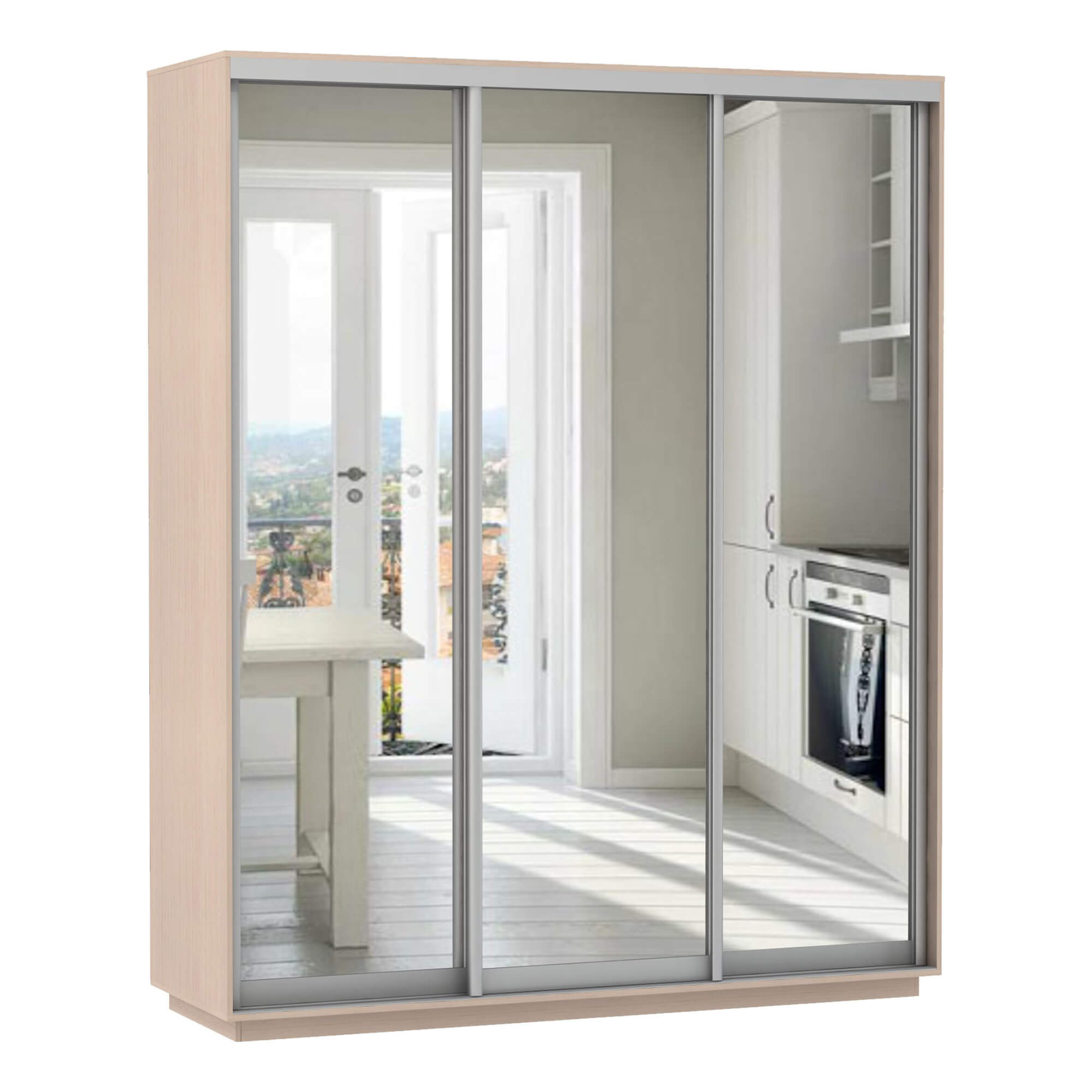 Шкаф-купе 3-х дверный Экспресс Экспенс 2200х1800х600 мм доступен к заказу в различных вариантах исполнения цвета фасада и корпуса, среди которых каждый сможет найти подходящий своему интерьеру.