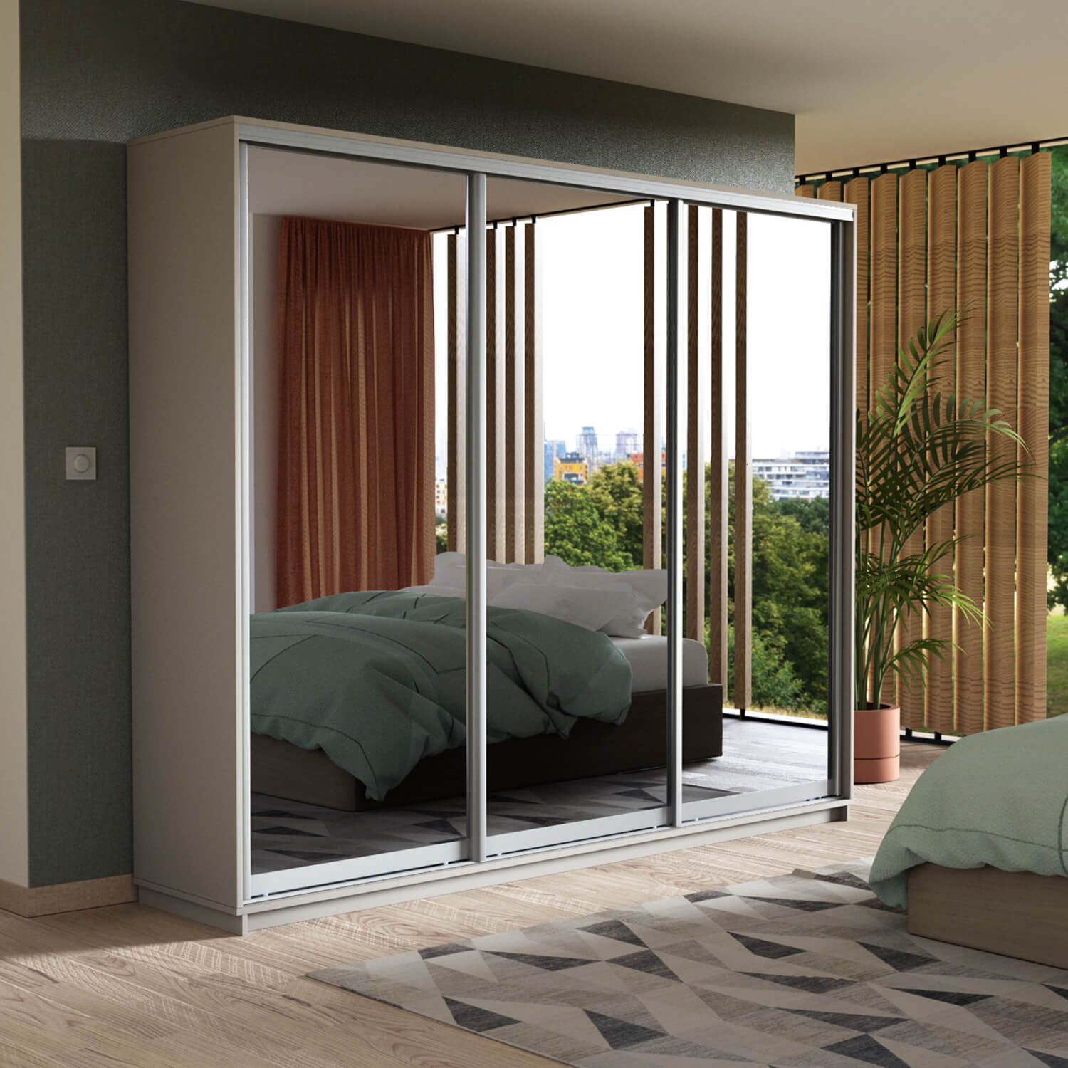 Шкаф-купе 3-х дверный Экспресс Экспенс 2200х2400х450 мм доступен к заказу в различных вариантах исполнения цвета фасада и корпуса, среди которых каждый сможет найти подходящий своему интерьеру.