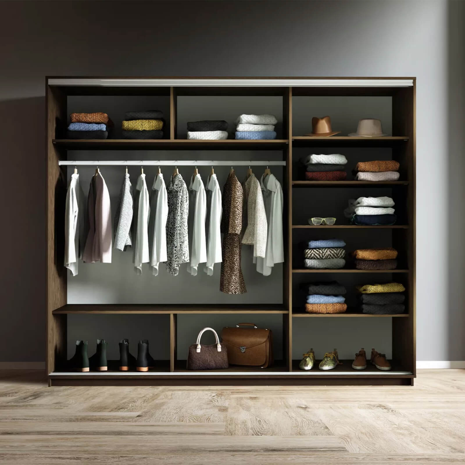 Шкафы-купе Экспресс – это красивые, практичные и качественные модели. Идеальное решение для Вашего гардероба! Внутри имеются вместительные полки для складирования сложенных вещей, антресоли и секция для размещения одежды на плечиках. С таким количеством мест для хранения вы можете рассортировать вещи и поддерживать идеальный порядок в шкафу. Прочная система направляющих прослужит долгие годы. При изготовлении шкафов-купе используются только экологически безопасные материалы, благодаря чему Вы приобретаете добротную корпусную мебель, соответствующую европейскому уровню качества.