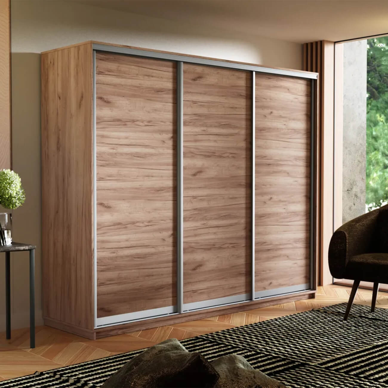 Шкаф-купе 3-х дверный Экспресс Элемент 2400х1800х600 мм доступен к заказу в различных вариантах исполнения цвета фасада и корпуса, среди которых каждый сможет найти подходящий своему интерьеру.