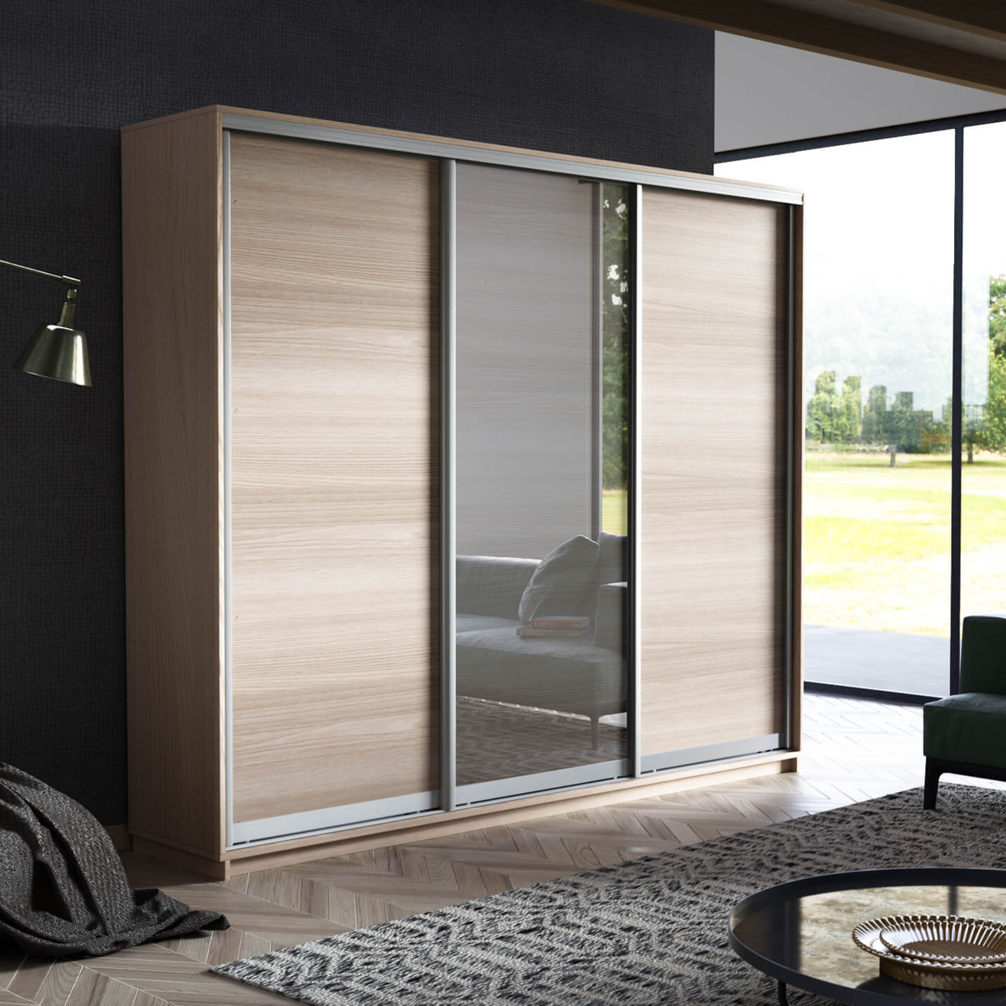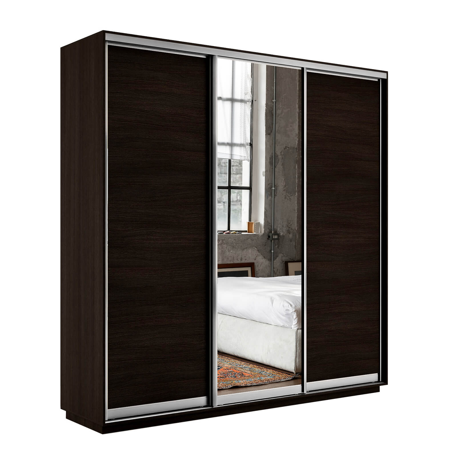 Шкаф-купе 3-х дверный Экспресс Медиум 2200х2100х450 мм доступен к заказу в различных вариантах исполнения цвета фасада и корпуса, среди которых каждый сможет найти подходящий своему интерьеру.