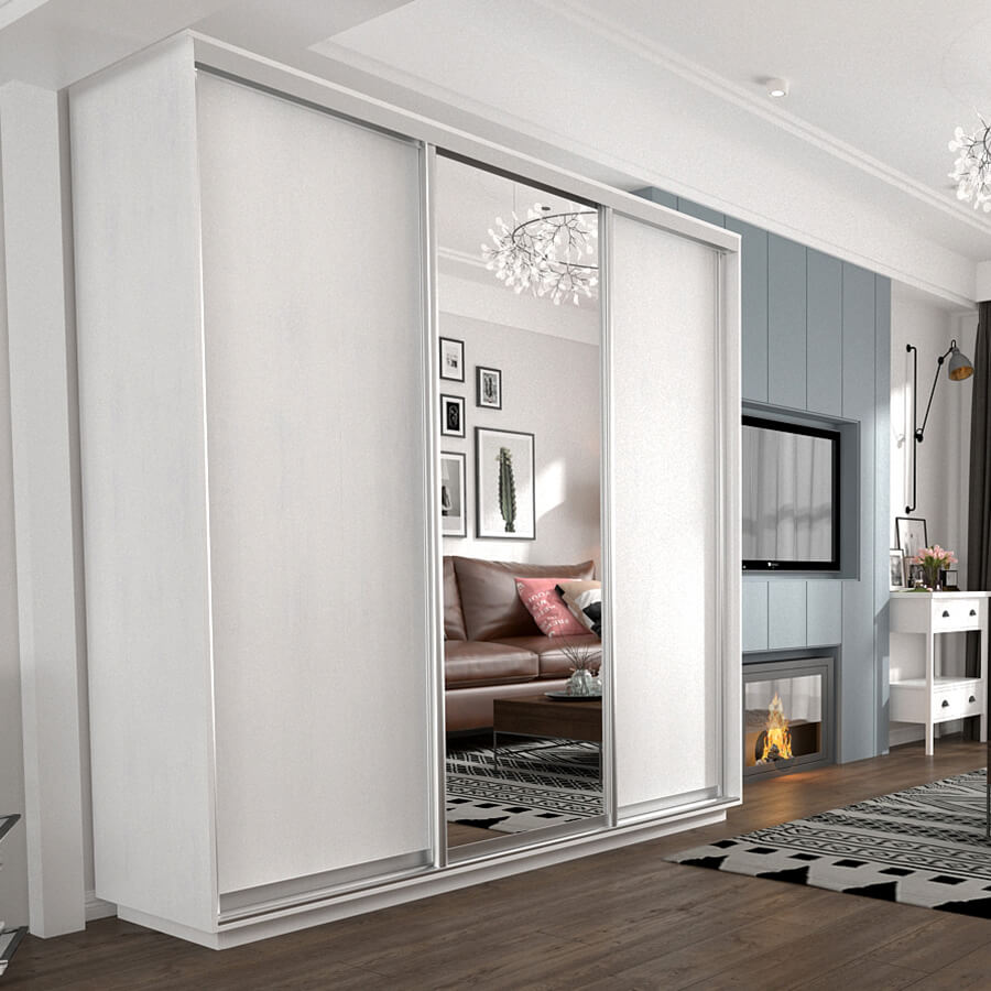 Шкаф-купе 3-х дверный Экспресс Медиум 2200х2400х600 мм доступен к заказу в различных вариантах исполнения цвета фасада и корпуса, среди которых каждый сможет найти подходящий своему интерьеру.