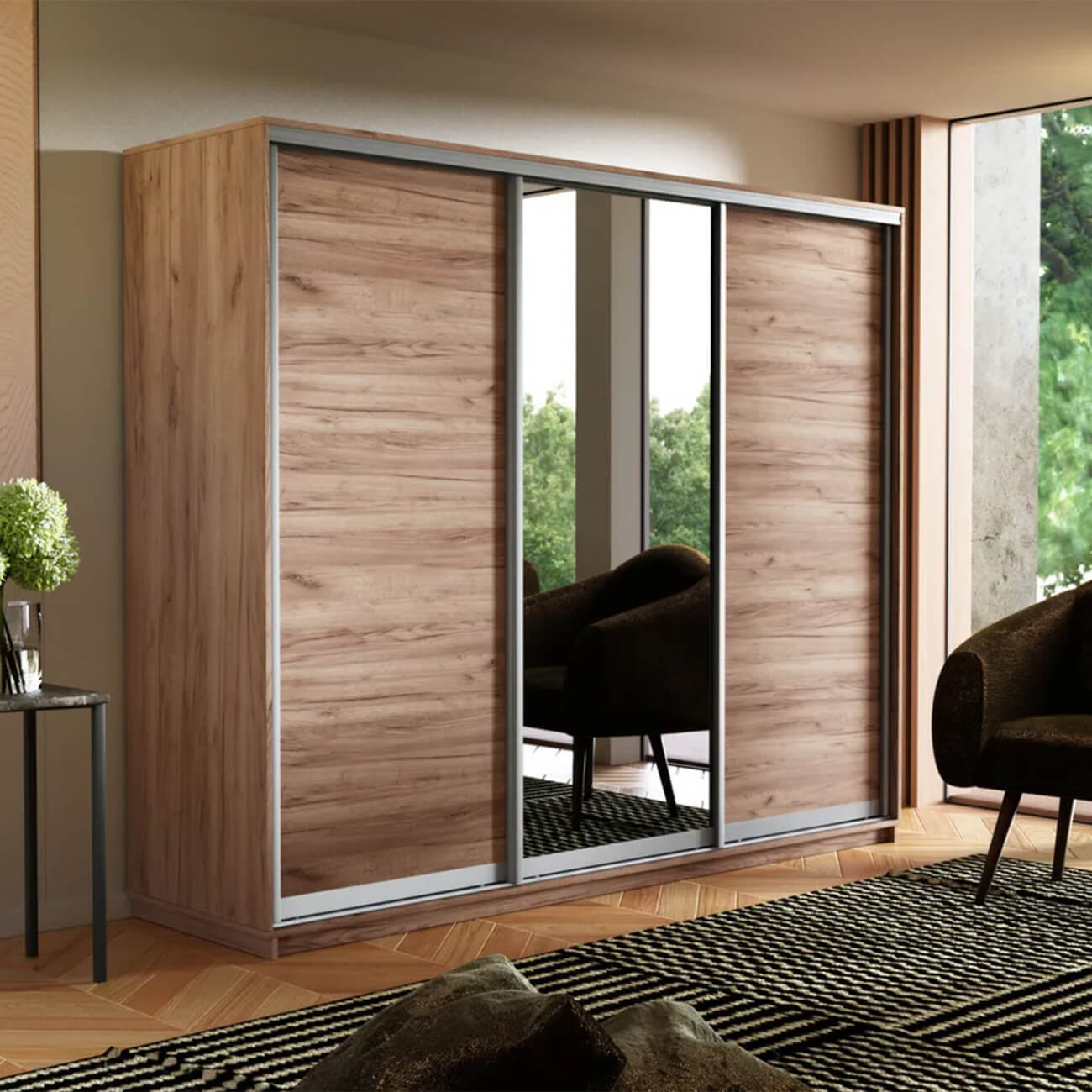Шкаф-купе 3-х дверный Экспресс Медиум 2400х1800х600 мм доступен к заказу в различных вариантах исполнения цвета фасада и корпуса, среди которых каждый сможет найти подходящий своему интерьеру.
