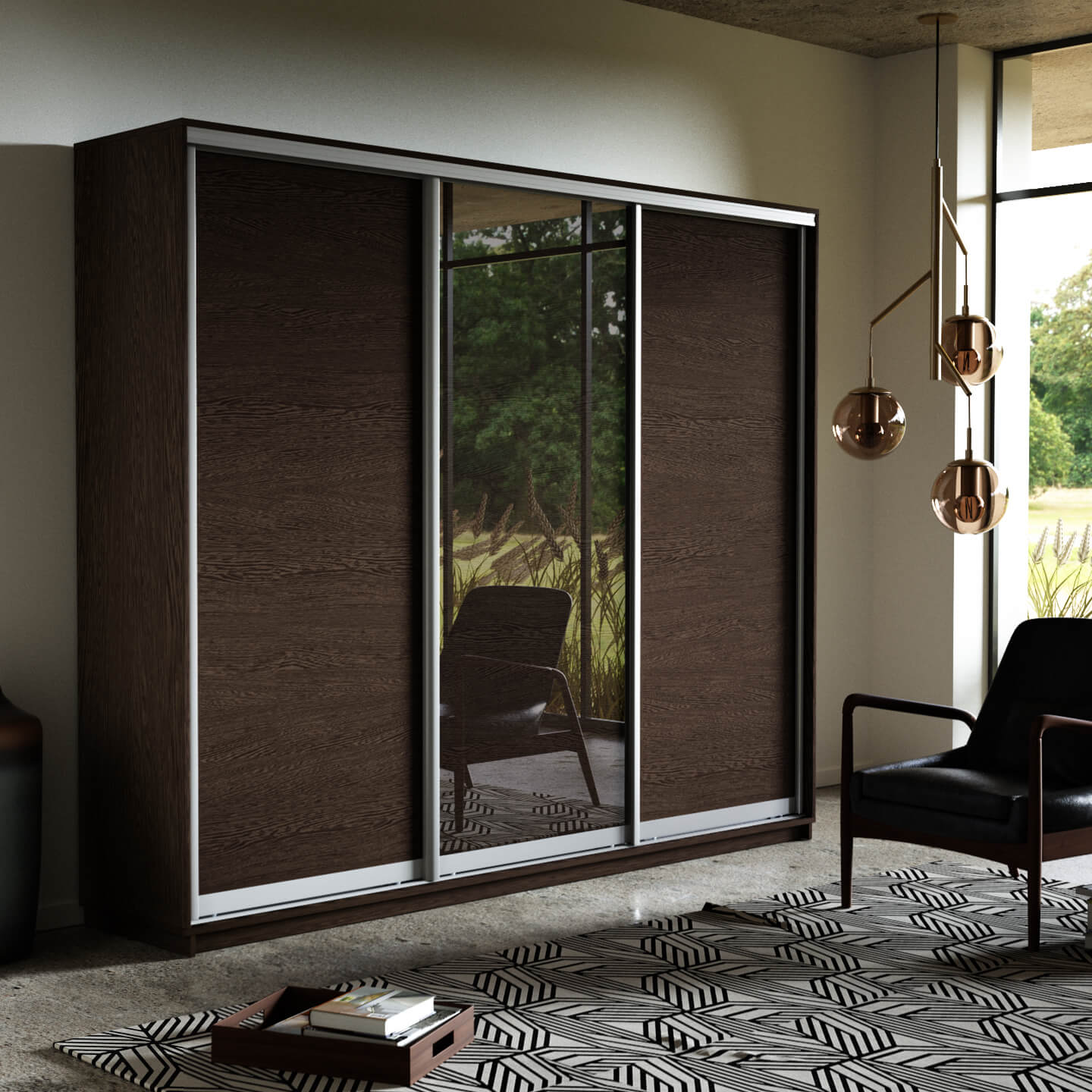 Шкаф-купе 3-х дверный Экспресс Медиум 2400х2100х450 мм доступен к заказу в различных вариантах исполнения цвета фасада и корпуса, среди которых каждый сможет найти подходящий своему интерьеру.