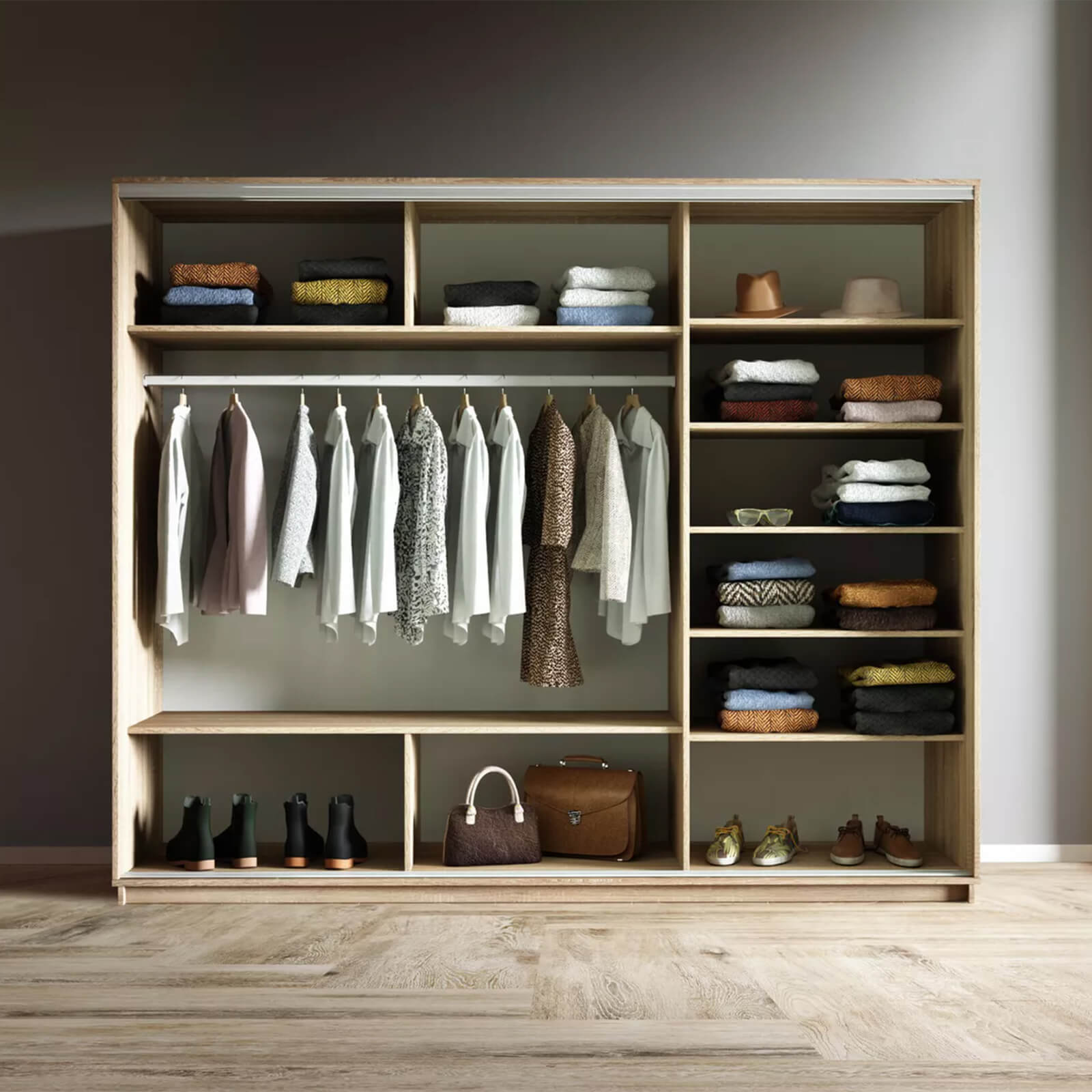 Шкаф-купе 3-х дверный Экспресс Медиум 2400х2100х600 мм доступен к заказу в различных вариантах исполнения цвета фасада и корпуса, среди которых каждый сможет найти подходящий своему интерьеру.