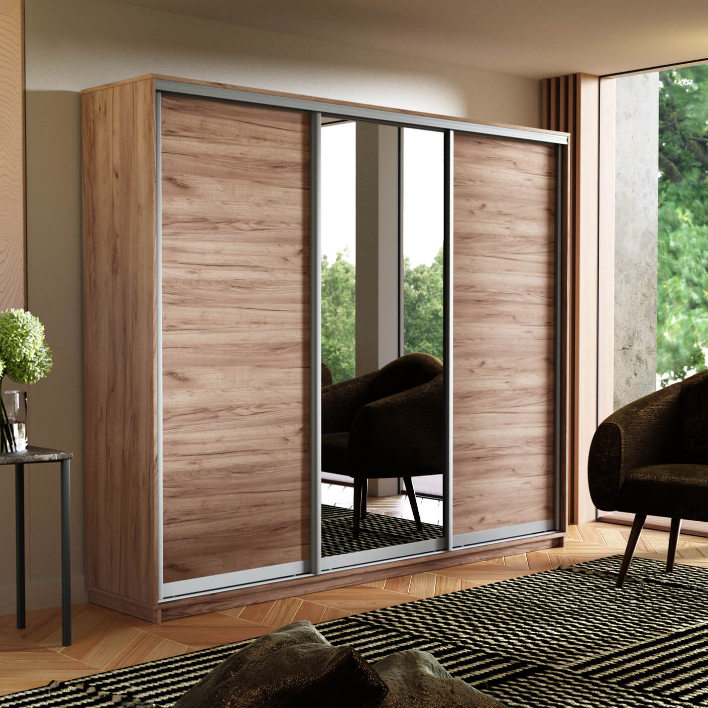 Шкаф-купе 3-х дверный Экспресс Медиум 2400х2400х450 мм доступен к заказу в различных вариантах исполнения цвета фасада и корпуса, среди которых каждый сможет найти подходящий своему интерьеру.