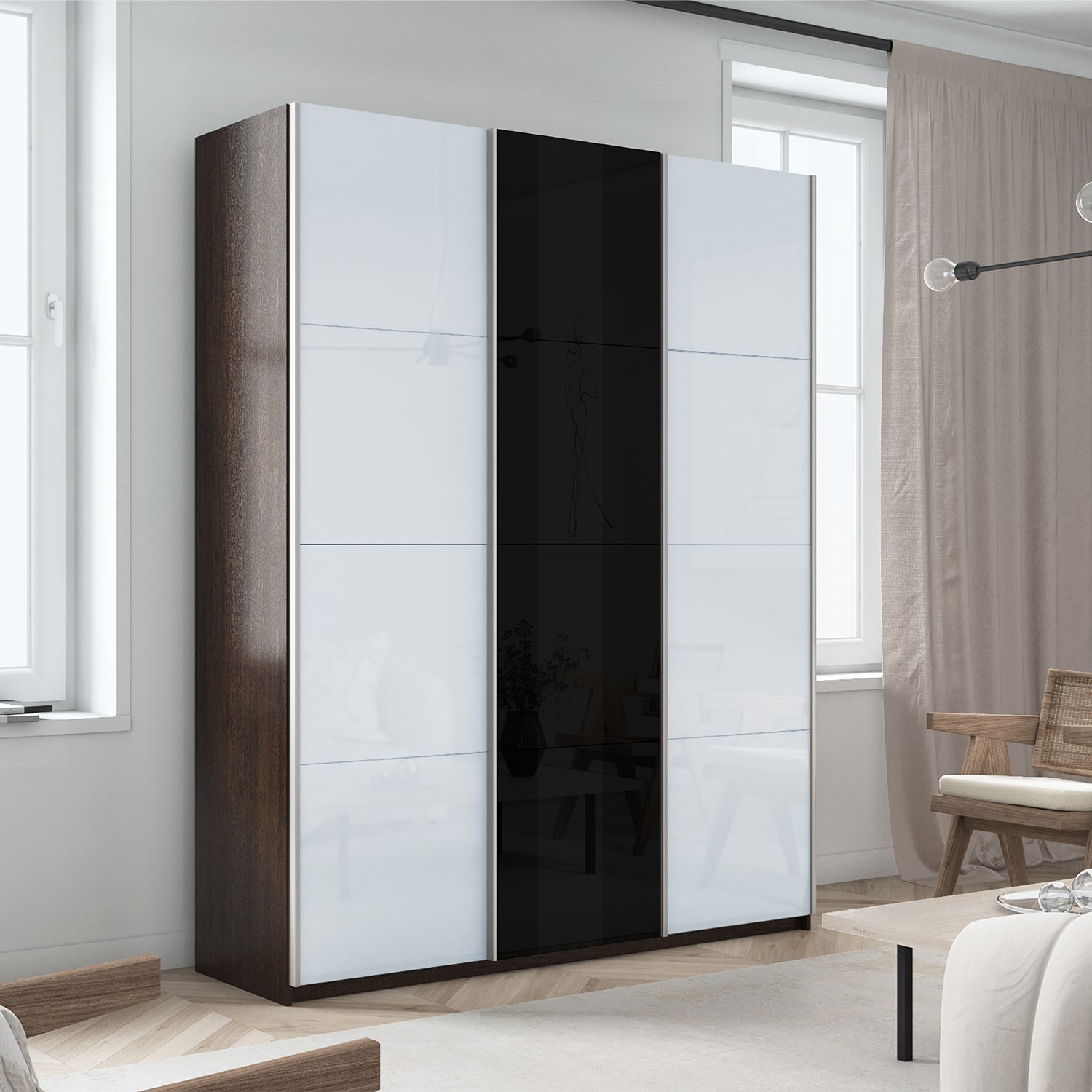 Шкаф-купе 3-х дверный Прайм Элемент Белое/Черное стекло 2300х2100х570 мм