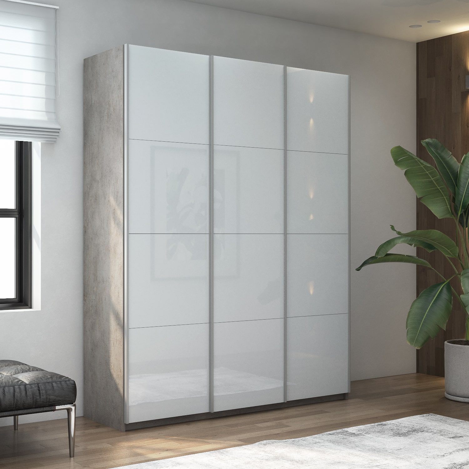 Из плюсов могу отметить, что у данной серии шкафа неплохой ассортимент. Смогли подобрать под наш современный стиль. Взяли бетонный корпус и белые двери. Так вот, белые двери оказались матовые. А мы думали ,что будет глянец. Но, так тоже неплохо. Сам шкаф очень вместительный. За счет того, что двери снаружи, не съедается пространство в корпусе. Много полок.