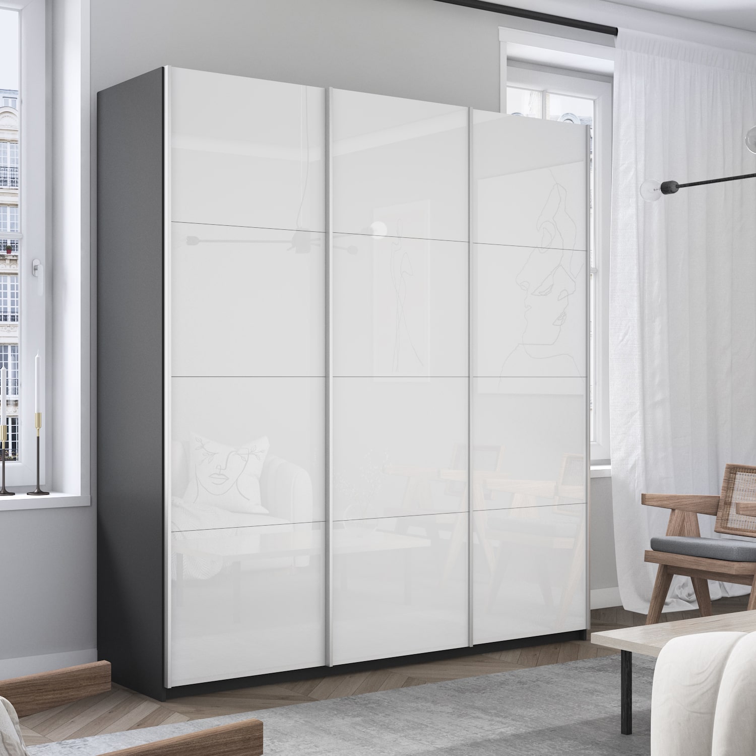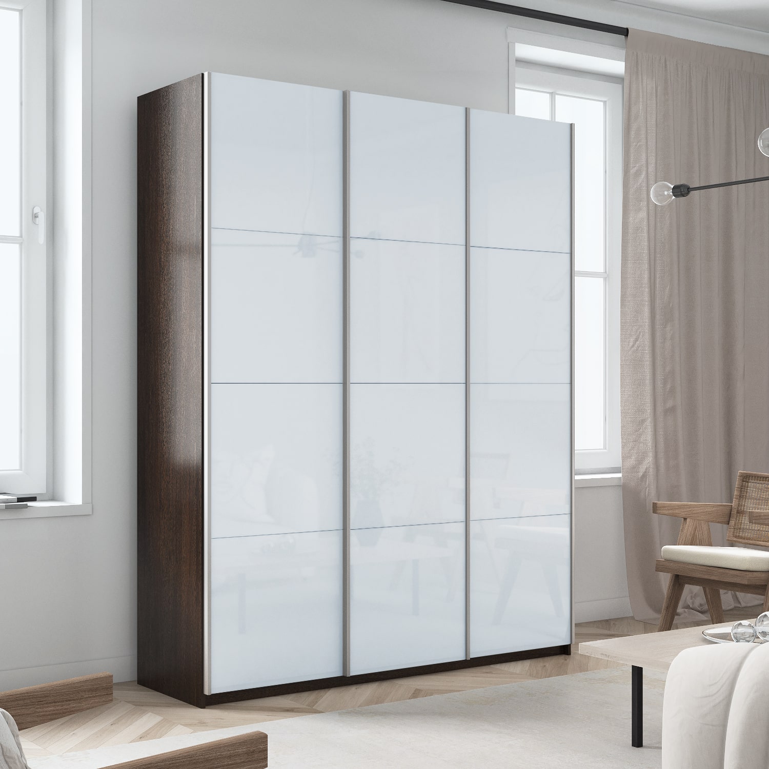 Шкаф-купе 3-х дверный Прайм Элемент Белое стекло 2300х2100х570 мм