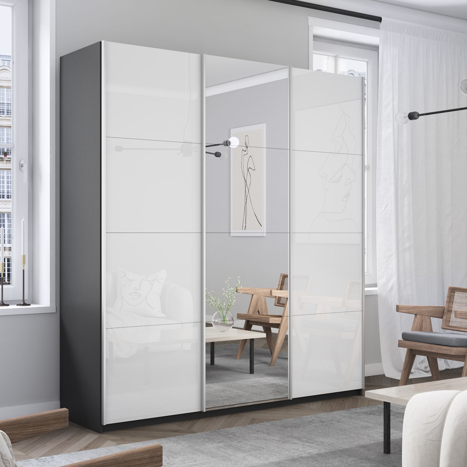 Шкаф-купе 3-х дверный Прайм Медиум Белое стекло 2300х1800х570 мм