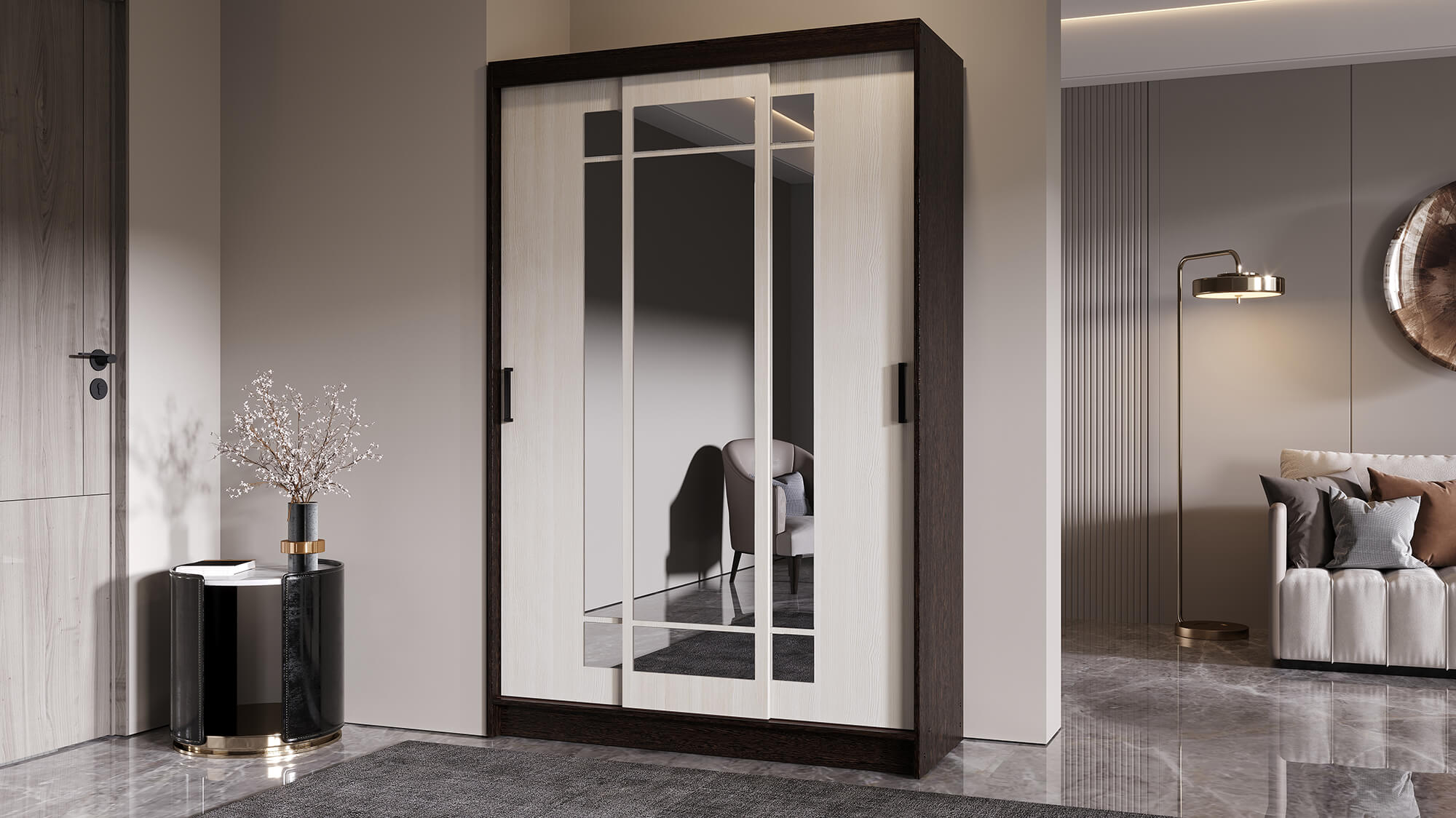 Шкаф‑купе «БРУНО» — практичное и эстетичное решение для хранения вещей. Он сочетает надёжность материалов, продуманную эргономику и современный внешний вид.