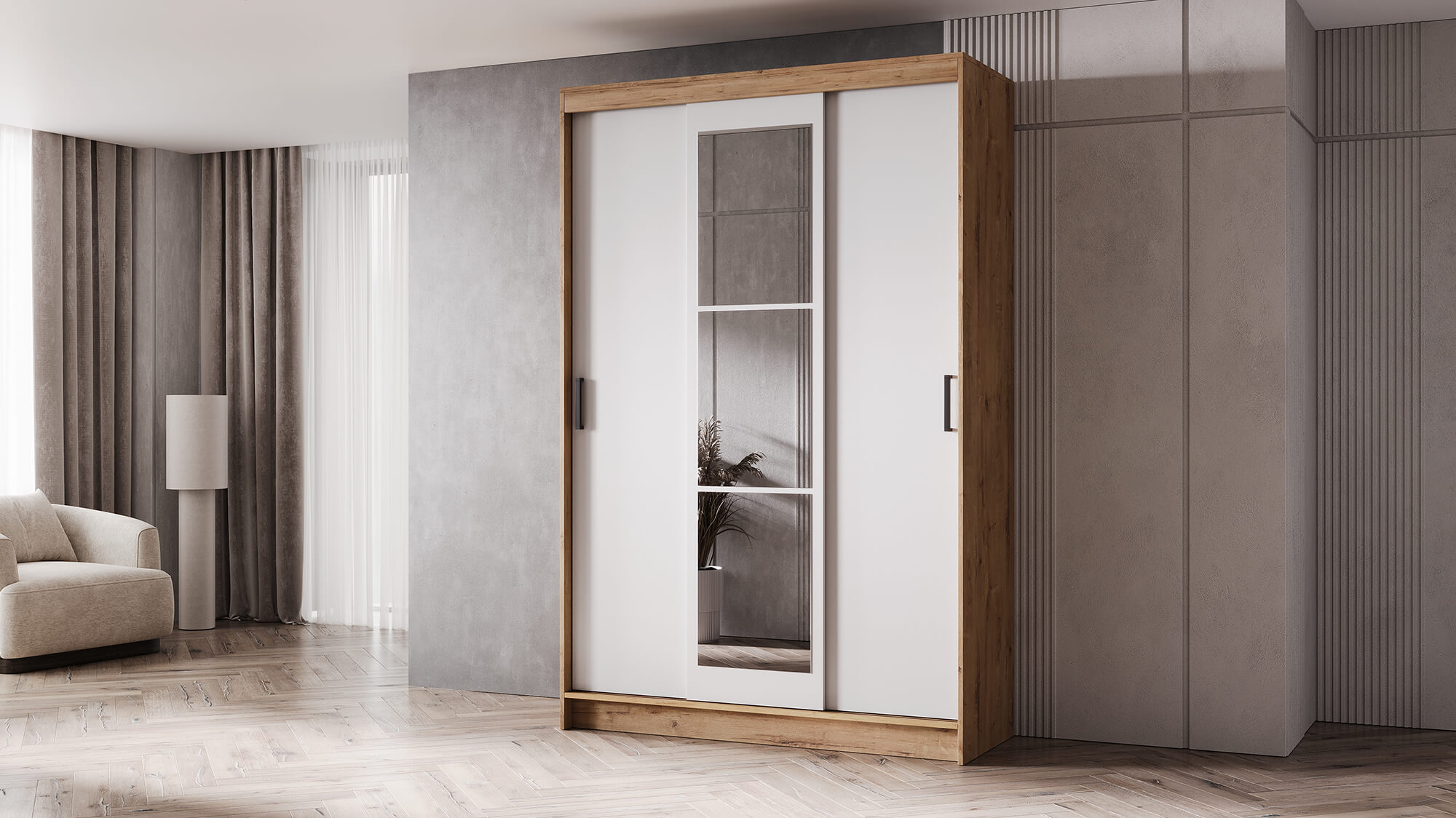 Шкаф‑купе «БРУНО» — практичное и эстетичное решение для хранения вещей. Он сочетает надёжность материалов, продуманную эргономику и современный внешний вид.