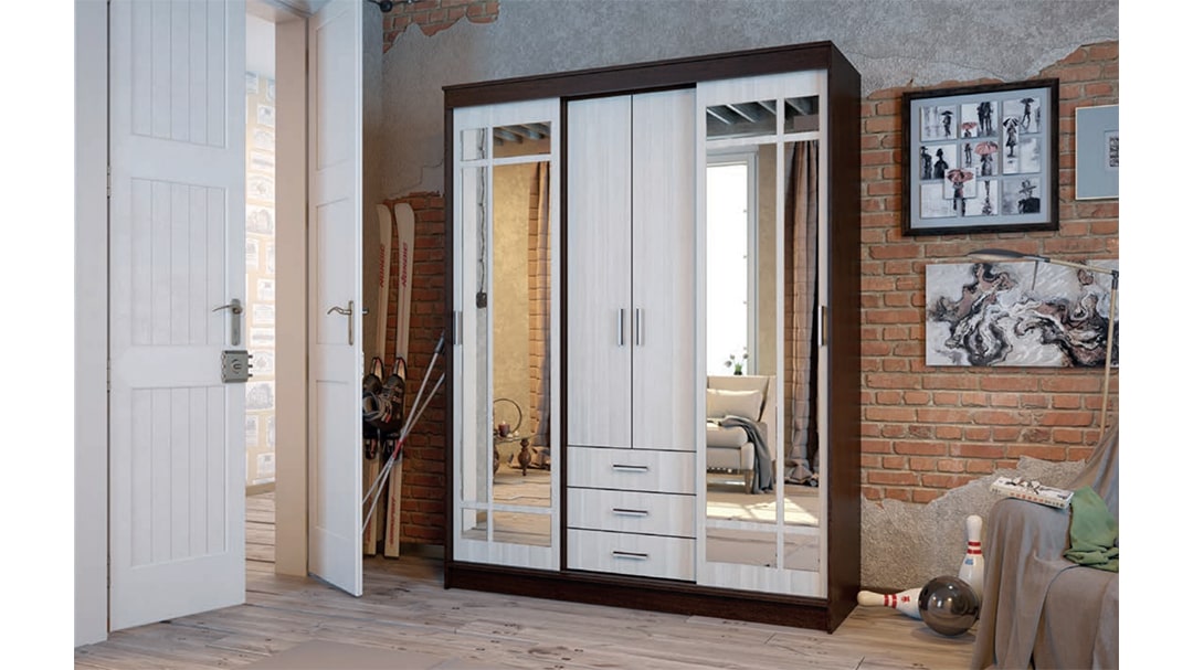 Выглядит немного необычно на фоне других шкафов-купе. Понравилась идея с зеркалами. Устроила цена.