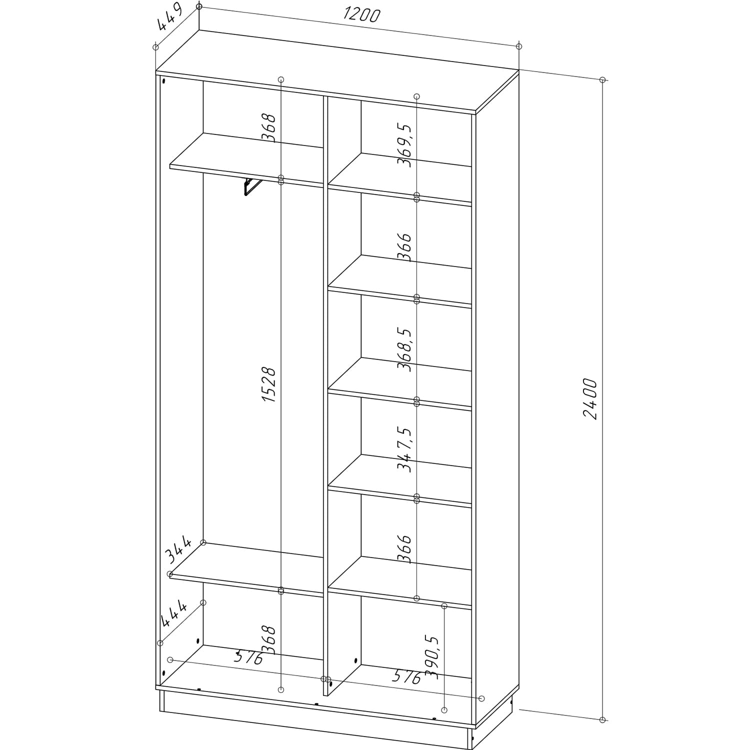 В шкафах выдвижная вешалка, нагрузка до 12 кг.