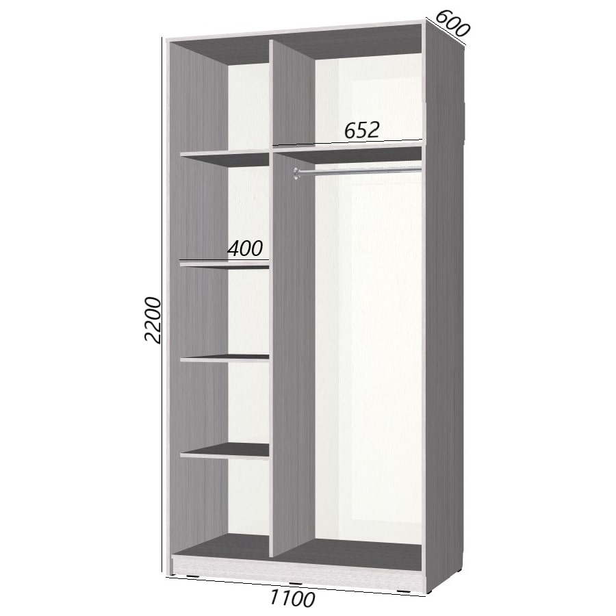 Шкаф-купе Старт 2-дверный МДФ с зеркалом 1100 (высота 2200, глубина 600), материал корпуса - ЛДСП. Производитель - VM-mebel.