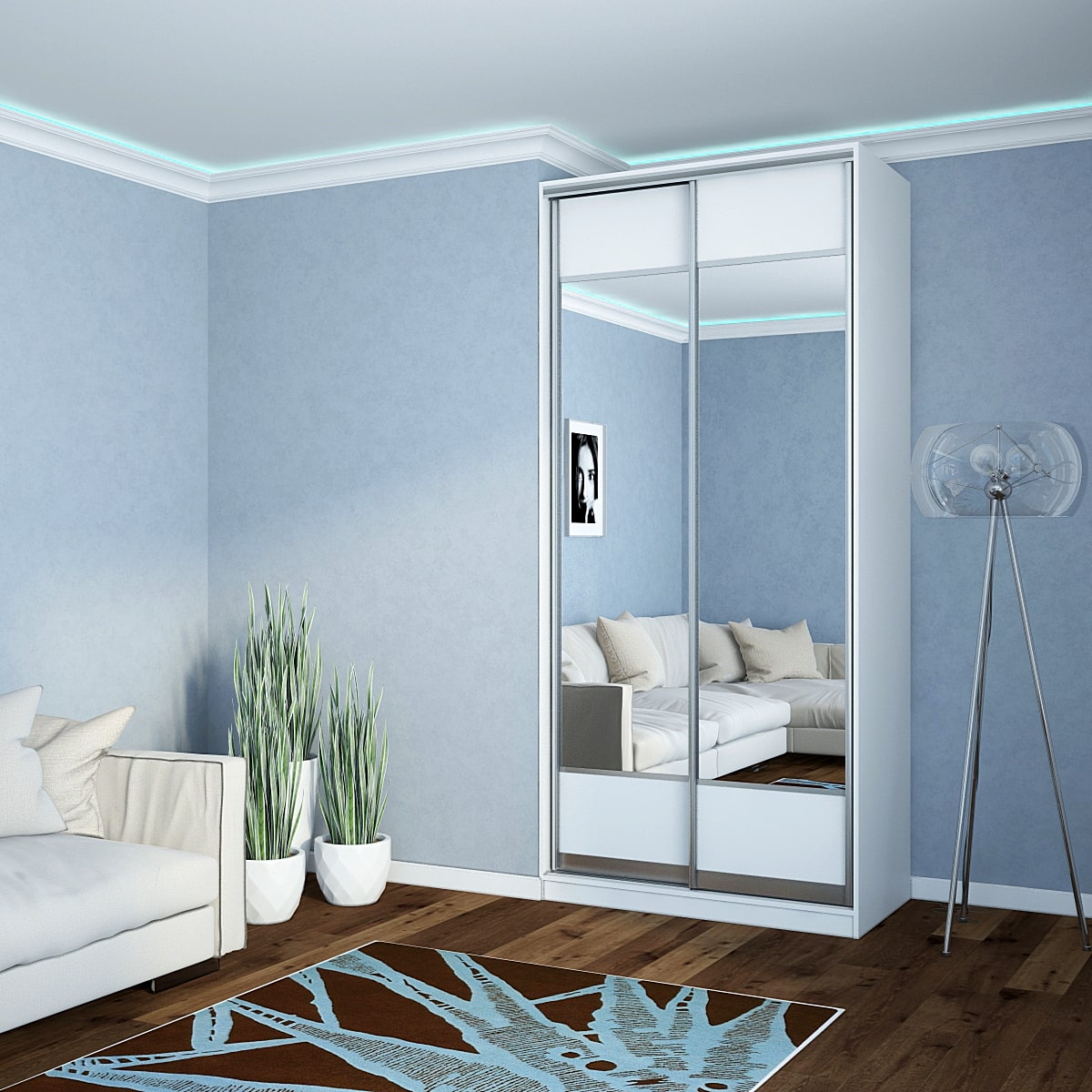 Шкаф-купе Старт 2-дверный с зеркалами и вставки верх, низ-ЛДСП 1100 (высота 2400, глубина 450) доступен к заказу в различных вариантах исполнения цвета фасада и корпуса, среди которых каждый сможет найти подходящий своему интерьеру.